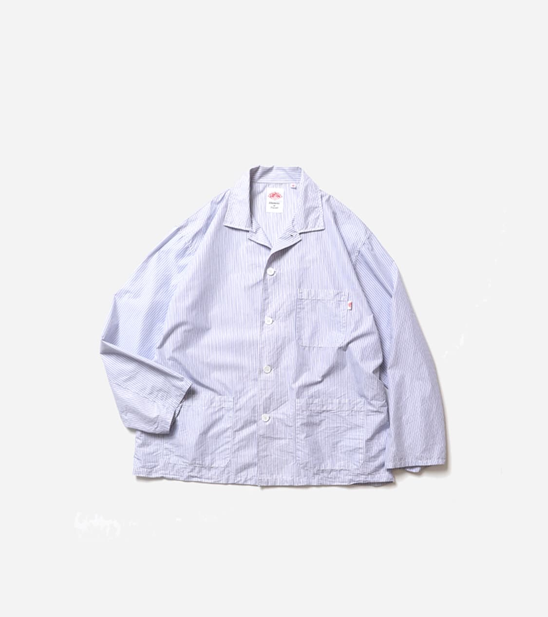 · T/C Poplin Coverall Shirt 입니다 · 탄탄한 원단감의 T/C Poplin 원단으로 제작되었습니다 · 가벼운 셔츠 원단에 베이직한 커버올 디자인을 담았습니다 · 여유있는 실루엣의 제품입니다 · 표기 사이즈 42 · 가슴 64 / 어깨 53 / 팔길이 58 / 총장 69 (측정법에 따라 1~2cm 오차가 존재할 수 있습니다)