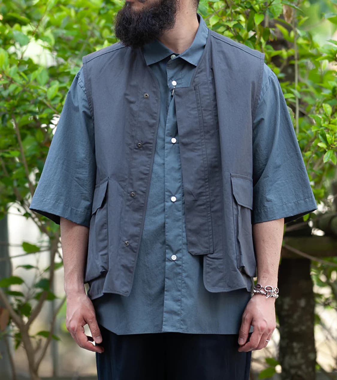 · 'VE01232' Vest 입니다 · 면과 화지 원단을 사용하여 제작된 제품입니다 · 가볍고 드라이한 촉감의 제품입니다 · 심플하지만 포인트 주기 좋은 제품입니다 · MADE IN JAPAN · 표기 사이즈 46 · 가슴 60 / 어깨 43 / 총장 66 (측정법에 따라 1~2cm 오차가 존재할 수 있습니다)