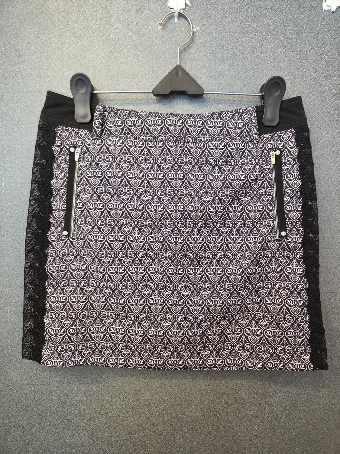 루이까스텔 골프 스커트에요. 사이즈 s, 허리단면 37, 총장 39, 실측은 커요. 29사이즈가 잘맞아요. 색상 검정,흰색이구요. 옆선 레이스 포인트되어있어요. 상태좋아요.
