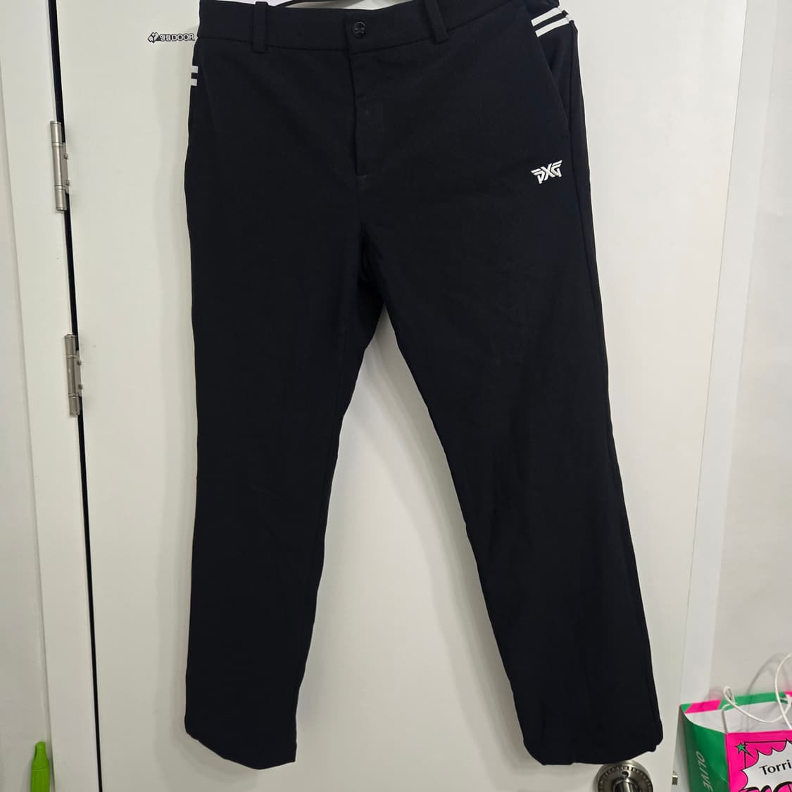 PXG 골프 바지 블랙 색상 L 사이즈입니다 폴리아미드 89%, 엘라스탄 11% 소재로 편안하게 착용 가능해요 깔끔한 디자인으로 어떤 상의와도 잘 어울립니다 활동량이 많은 골프 라운딩에 최적화된 바지입니다 1회 착용후 안입는 옷 상자에 보관만하다가 지금은 작아져서 입지도못해 판매합니다 정찰가 47만원정도였고 품번 검색해보시면 아시겠지만 아직도 판매가 30~40 사이에 형성되어있습니다 어쩔수없이 구김이 좀 있는데 세탁소 맡기시면 새 옷 과 같은 컨디션입니다
