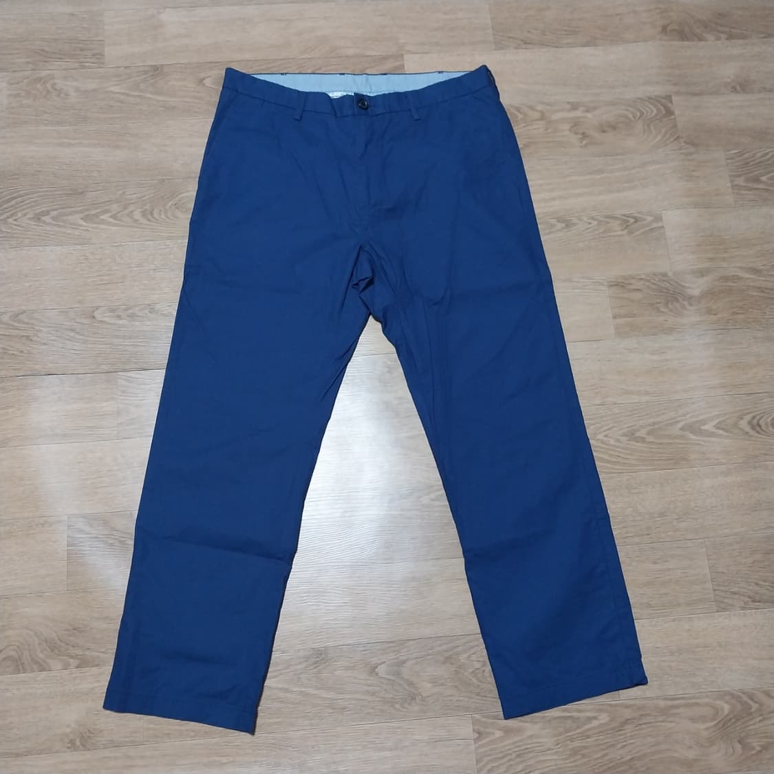 헨리코튼의 매력적인 네이비 색상 슬림핏 면바지예요 허리 33 인치, 총장 94cm(키좀작으신분) 편안하게 착용 가능해요 면 97%, 폴리우레탄 3% 혼방으로 활동성도 좋아요 깔끔한 디자인으로 어떤 상의와도 잘 어울려요