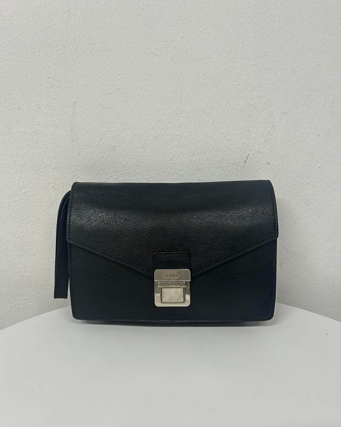 Fendi vintage leather clutch bag 미니멀한 직사각 실루엣에 메탈 락 디테일이 포인트로 들어간 펜디 빈티지 클러치백입니다. 결감이 살아있는 블랙 레더 바디와 클래식한 플랩 구조, 손목 스트랩이 더해져 간결하면서도 고급스러운 분위기를 연출합니다. 포멀/데일리 모두 활용 가능한 안정적인 디자인의 제품입니다. • 100% authentic • counterfeit 판정 시 200% refund guarantee • Color : Black • Material : Leather • Size : one size • 실측cm (25 x 17 x 5) • Price : 159,000 Condition : 8.5/10 전체적으로 준수한 컨디션이며, 바디 미세 스크래치 및 사용감, 내부 생활 사용감 존재합니다. Delivery cost. 3,500 / 6,000 (CJ대한통운) • 오리진하우스 자사몰과 함께 동시 판매되는 제품입니다. • 발견하지 못한 작은 이염이나 하자가 있을 수 있습니다. • 빈티지 특성상 교환 및 환불은 어려우니 신중한 구매 부탁드립니다. • 재는 방식에 따라 실측은 최대 3cm 정도 차이날 수 있습니다.