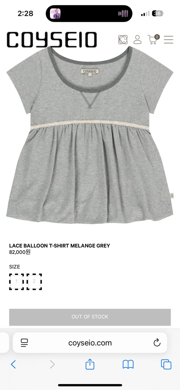 코이세이오 벌룬 티셔츠 그레이