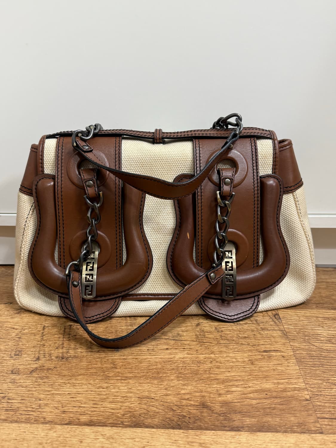 펜디 더블 바게트 숄더백 판매합니다. 캔버스 + 브라운 레더 조합으로 클래식하면서도 요즘 스타일에 잘 어울리는 디자인입니다. 2020년대 모델이며, 캔버스 + 브라운 레더 조합으로 요즘 스타일에도 잘 어울리는 디자인입니다. 전체적으로 상태 좋으며 가죽 자연스러운 사용감 정도만 있습니다. (사진 참고) 정품 인증 태그 및 RFID 확인 가능 남녀 모두 사용 가능. 아마 맨즈로 나왔을거에요. 수납도 좋은데 가방 자체가 무게감이 좀 있어서 저는 안에 많이 안넣고 다녔어요. 크기(손잡이제외) : 가로위:30cm/가로아래:34cm/세로:21cm/ 기타 크기는 문의주세요 📌 직거래/택배 가능 📌 쿨거래시 소정 네고 가능