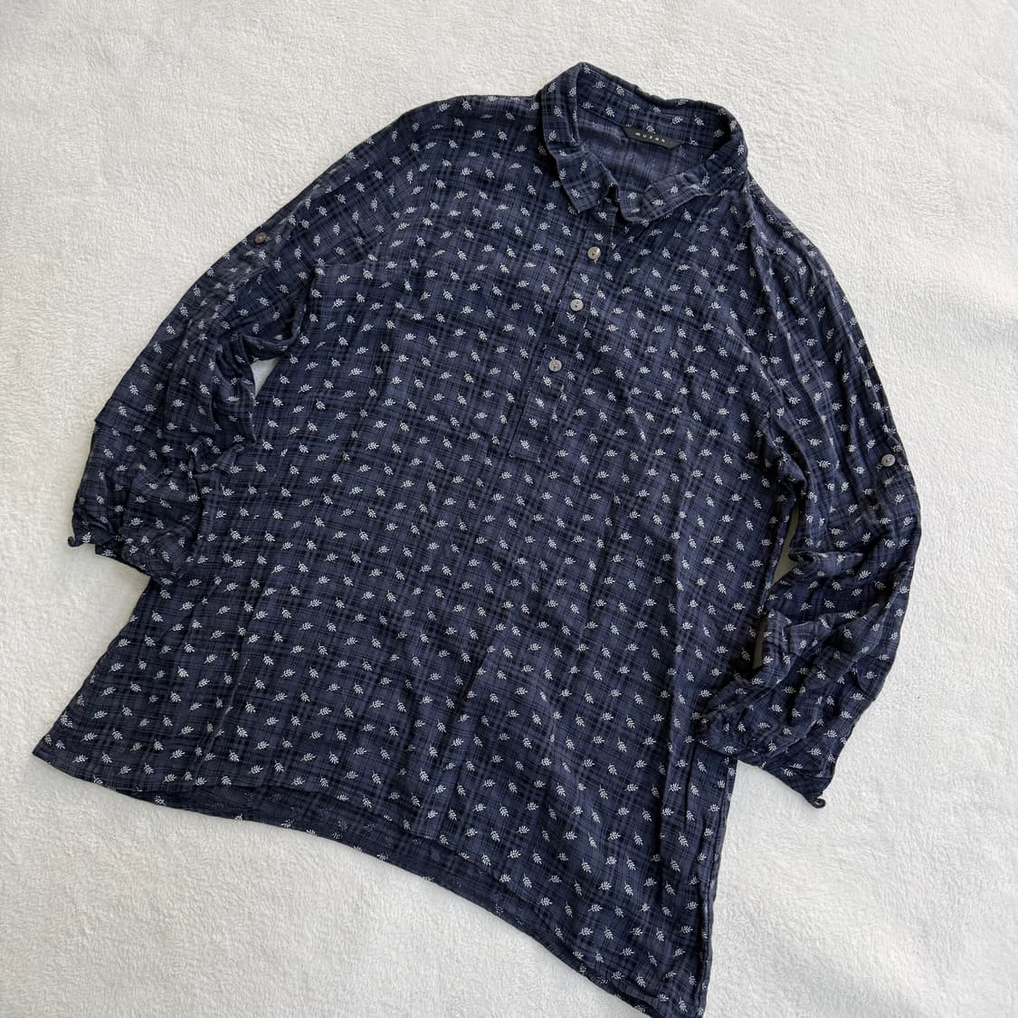• JPN 90s 일본 빈티지 Y2K 아메카지 랜즈엔드 네이비 체크 셔츠 M