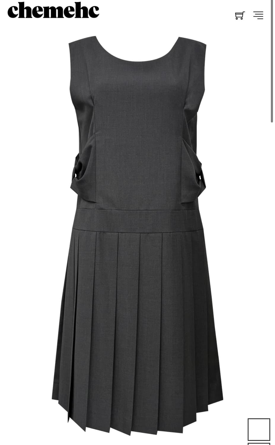 체메씨 BOW SLEEVELESS PLEATED DRESS 차콜