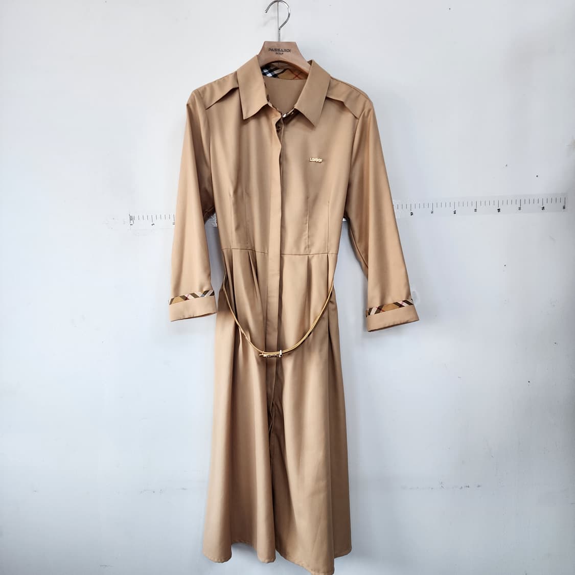 베이지 색상의 B 디자인 벨트 롱 원피스입니다. 핏이 예쁘게 잡히는 롱 원피스라서 날씬해보여요. 소매 부분에 체크 패턴이 포인트로 들어가 있습니다. 별도 문의 없으시면 바로 안전결제 부탁드려요! 반품/교환/환불❌️