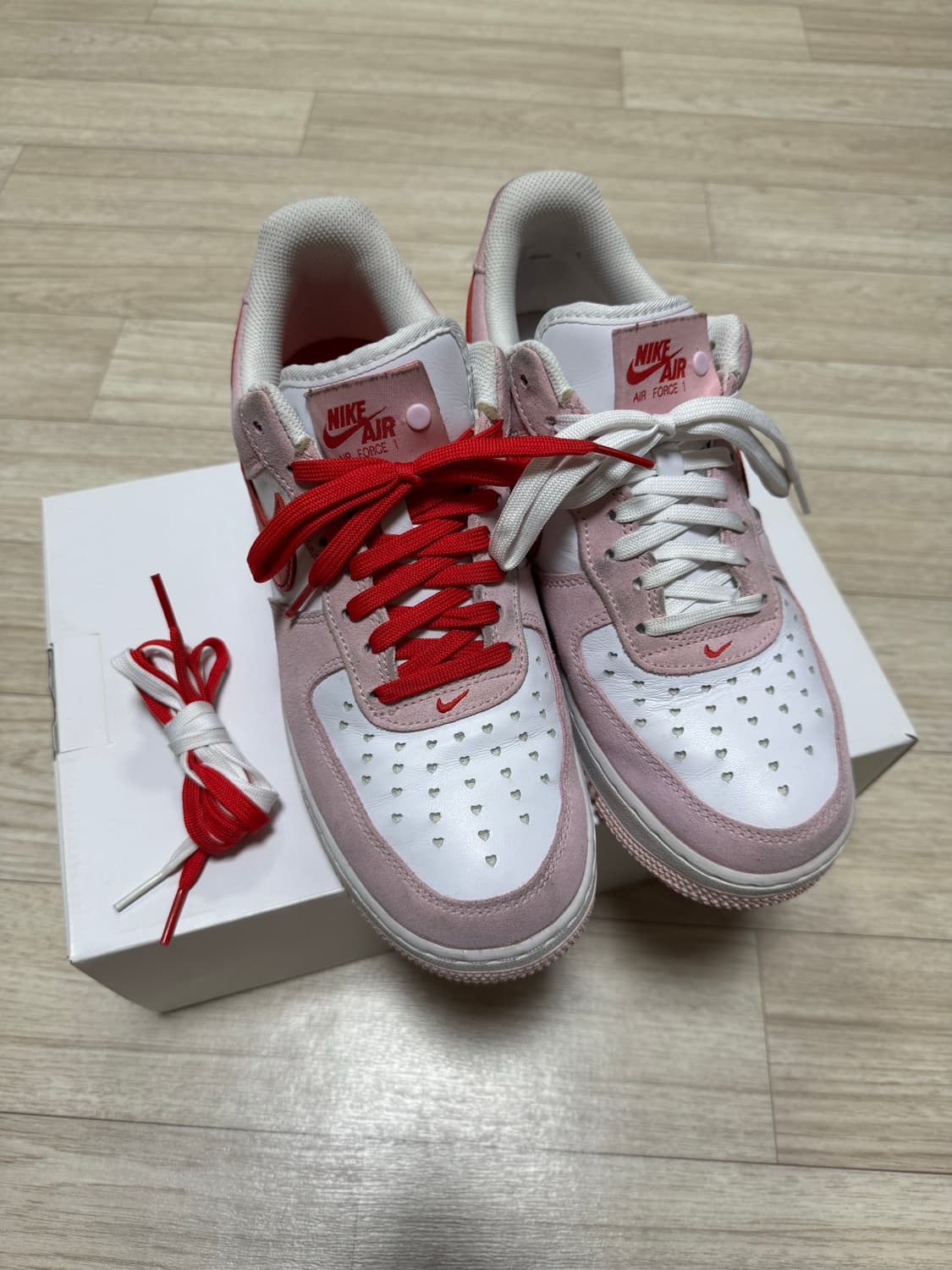 265 나이키 에어포스 발렌타인 데이 핑크 구성품 다 있습니다
