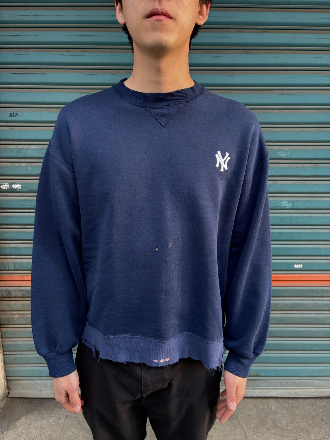 90s 빈티지 디스트로이드 페인팅 플레인 맨투맨