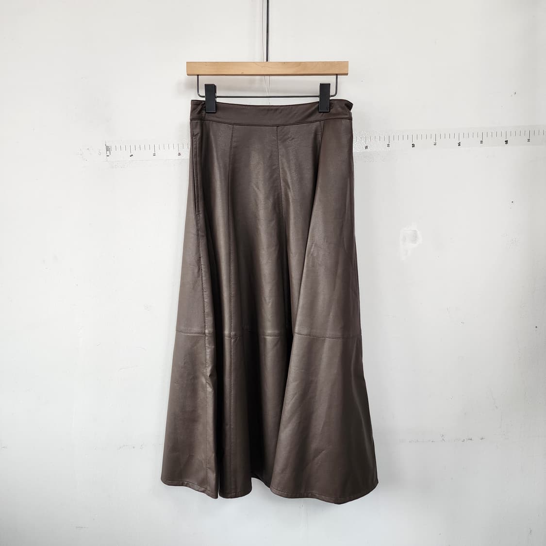 은은한 광택이 도는 브라운 레더 롱 스커트입니다. A라인으로 떨어지는 핏이 멋스럽고, 은은한 브라운 컬러라 코디하기도 용이합니다. 데이트룩이나 하객룩으로도 손색없을 듯 합니다. 문의 없으시면 바로 안전결제해주시면 됩니다! 반품/교환/환불❌️