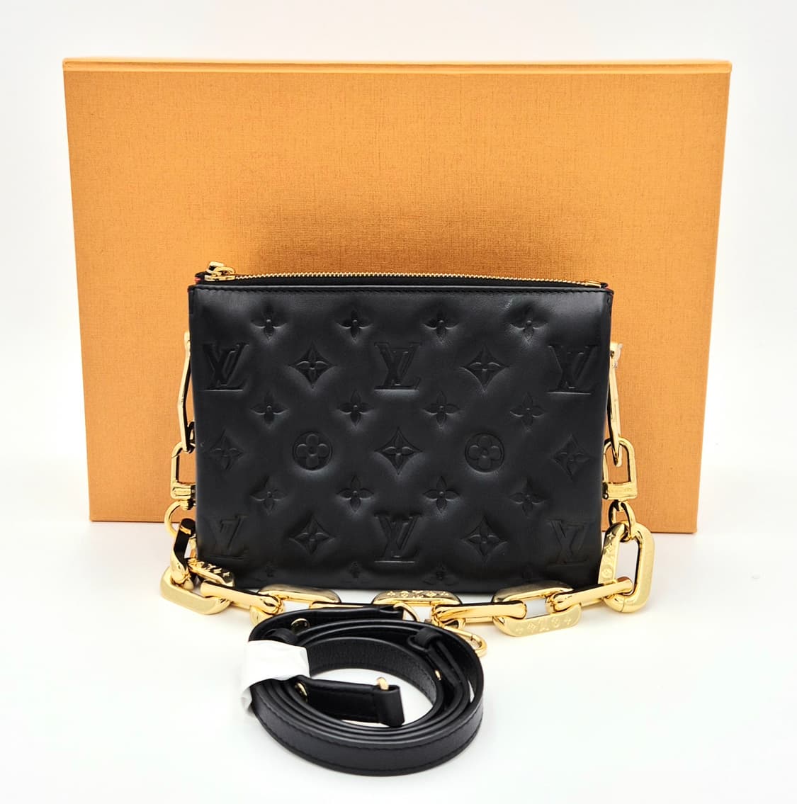 루이비통 쿠상 BB 토트겸 숄더백 루이비통 시그니처 쿠션 모노그램 엠보 디자인 부드러운 램스킨으로 고급스러운 볼륨감 체인 / 가죽 스트랩 탈부착 가능 (3WAY 착용) → 숄더 / 크로스 / 클러치 활용 가능 내부 레드 컬러 라이닝으로 포인트 브랜드: 루이비통 (Louis Vuitton) 모델명: 쿠상 BB (Coussin BB) 소재: 램스킨 (양가죽) 컬러: 블랙 하드웨어: 골드톤 제조국: 이탈리아 구성품: 케이스, 체인 스트랩 , 가죽 스트랩 한국명품감정협회 감정서 사이즈: 21 * 16 * 7 CM 상품등급: A 내부 잔이염 외 전체적으로 사용감적은 양호한 컨디션입니다. 바디: 자연스러운 사용감 외 양호 내부: 잔이염 외 양호 금속: 양호 N급 (새상품 / NEW) 새상품, 미사용품으로 사용하지 않음 스크래치,얼룩,마모 없음 S급 (새상품급 / Excellent) 개봉만 했거나 사용감 거의 없음 스크래치,얼룩,마모 거의 없음 A급 (양호 / Go