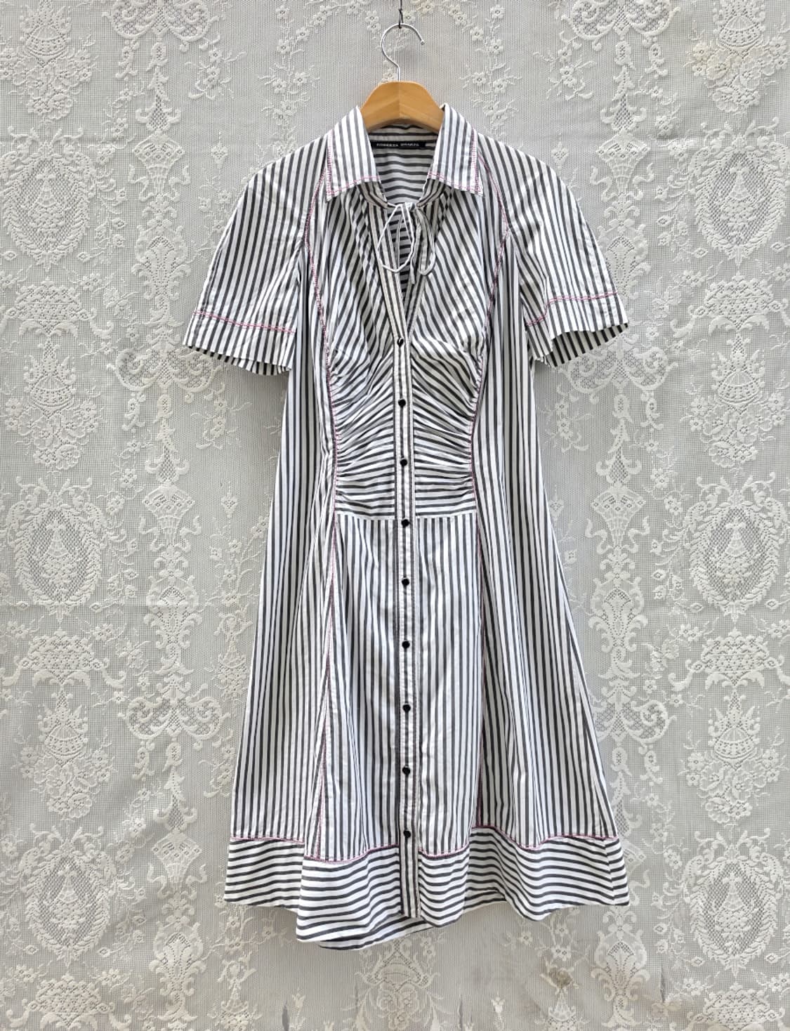 총장: 100 cm 어깨 +팔 : 33 cm 가슴 :44 cm 허리: 38 cm 소재: 면 63 % 나일론 엘라 혼방 표기사이즈 44 안녕하세요~ 봐주셔서 감사합니다. 이태리 베네치아 출신 디자이너 로베르타 스카르파 입니다. 이태리 메이드로 비싼 브랜드네요, 셔링이 자연스럽게 잡히고 딱붙핏으로 입는 제품입니다. 입었을떄 더 이쁜 제품이겠습니다. 좋은 컨디션으로 국내 라지입니다. m 입으시는분 핏하게 잘맞아요,