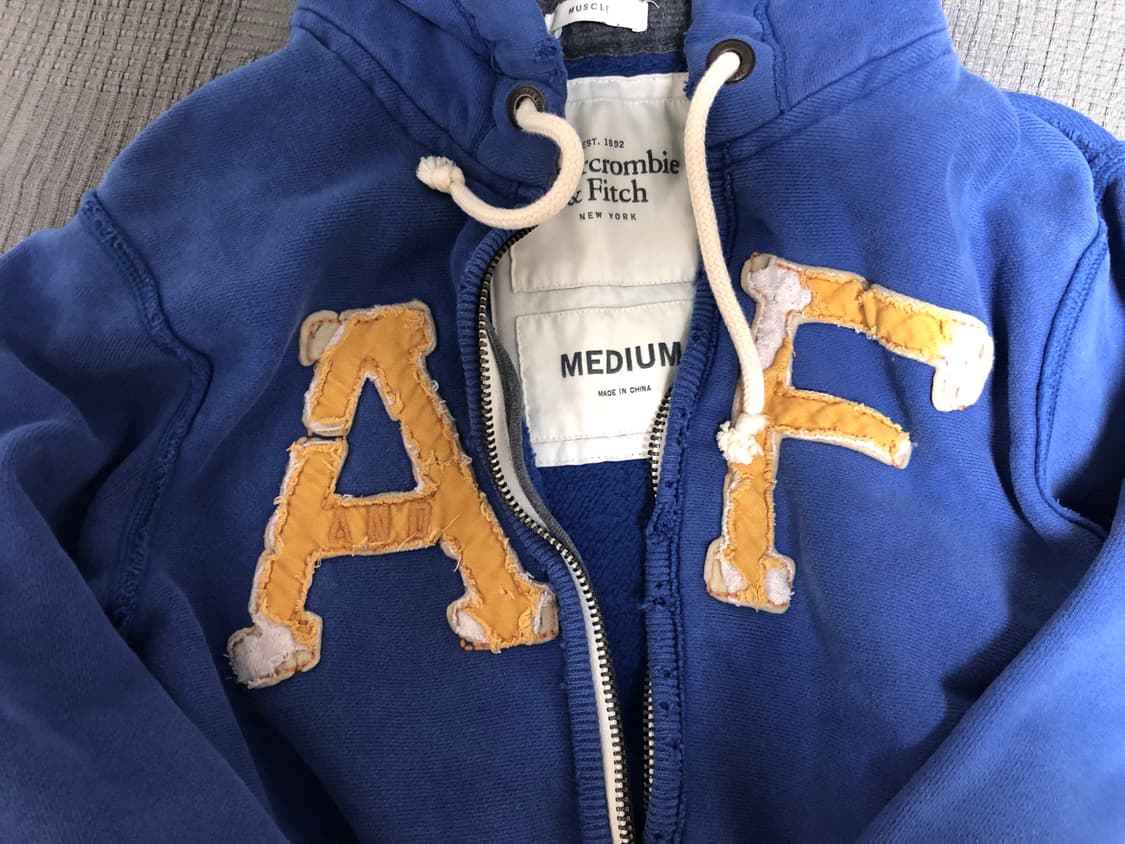 아베크롬비 뉴욕 후드집업 미디움 사이즈 입니다 빈티지 라방에서 구매했는데 팔 길이가 수선 되어있어서 재판매 합니다 저는 받고 한 번도 안 입었어요 싸게 구매하셔서 입으실 분이 사시면 좋을 것 같아요 당일 배송 해드립니다
