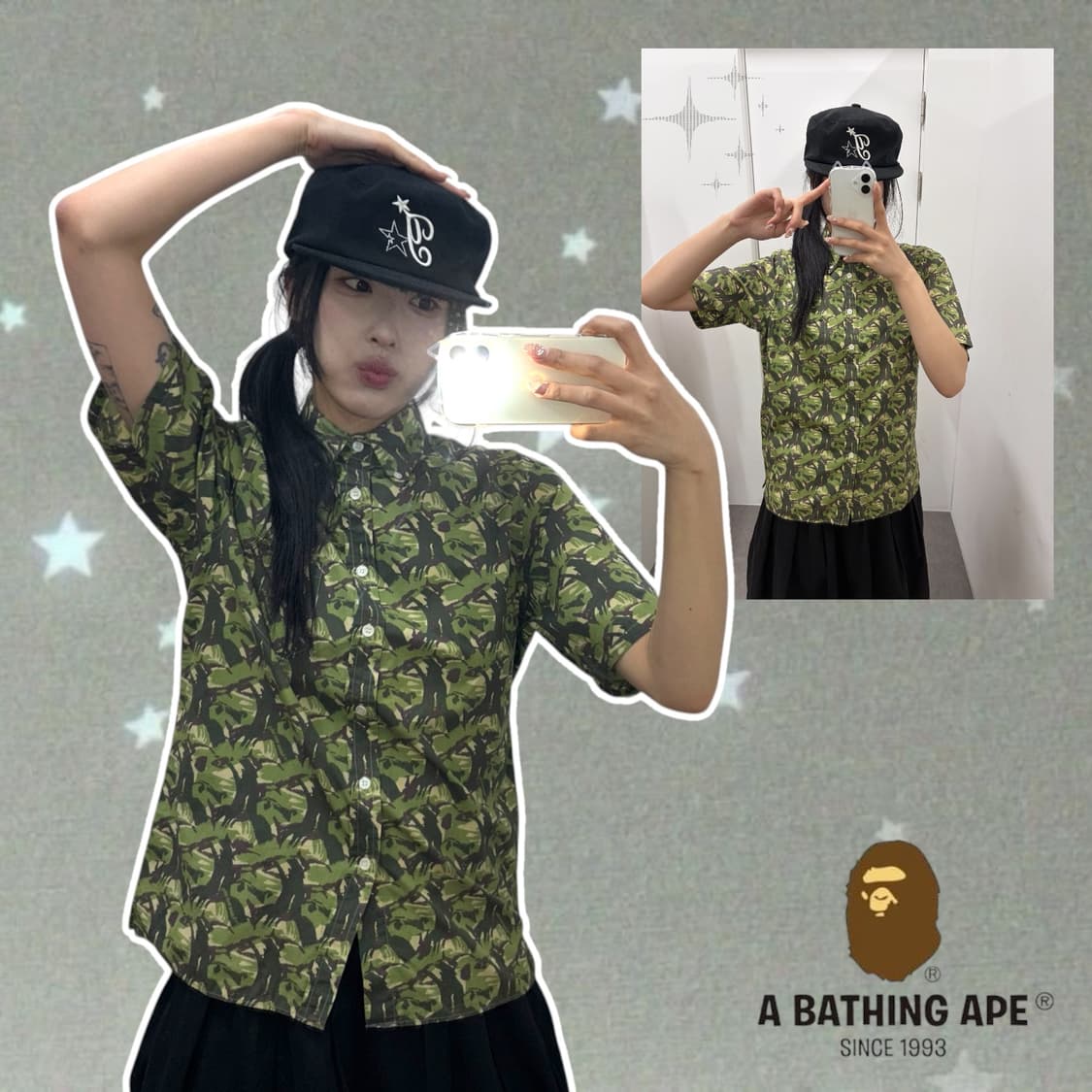 국내매장판 정품A Bathing Ape 별 패턴 반팔 셔츠