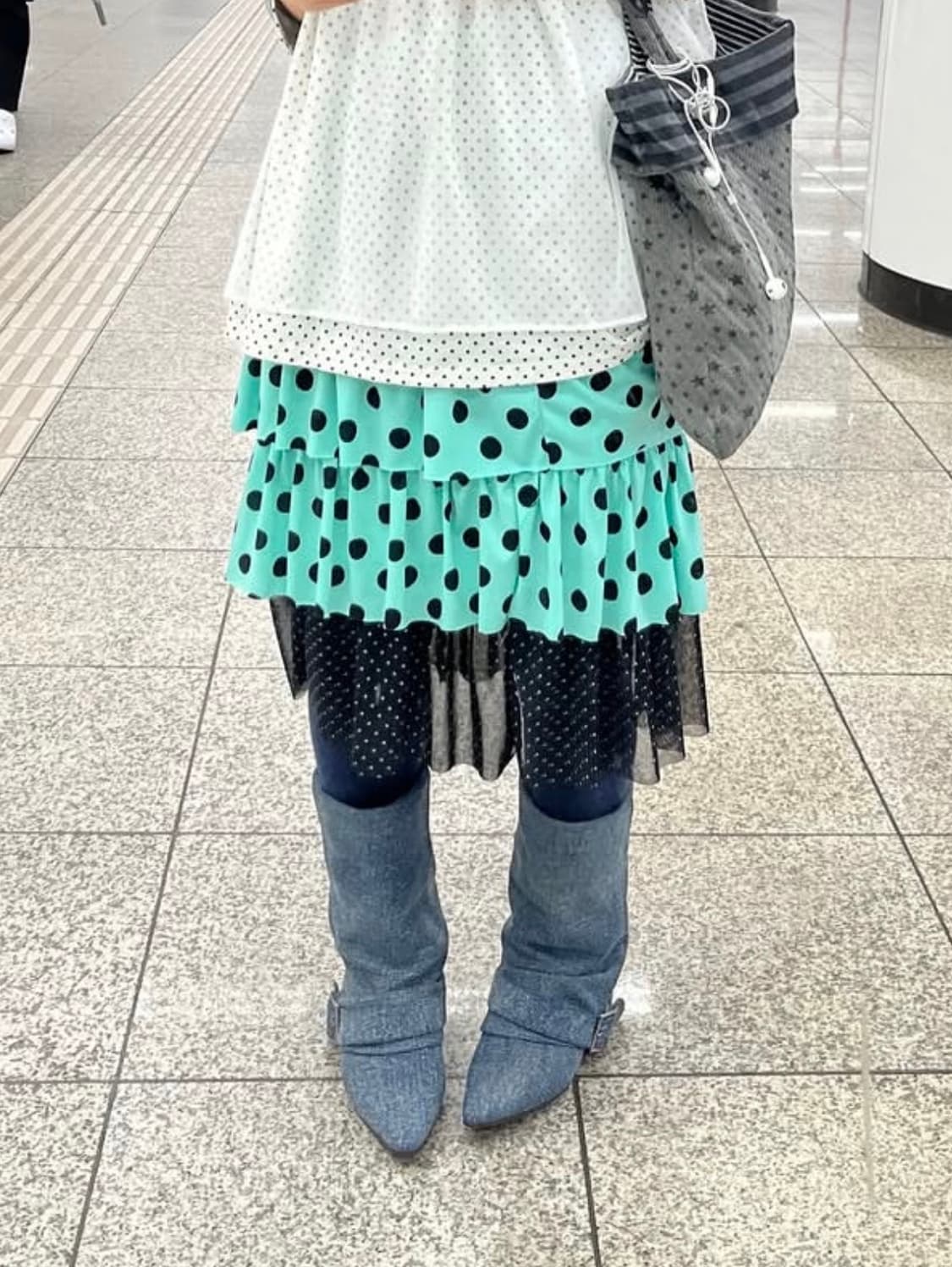 도트 프릴 민트스커트