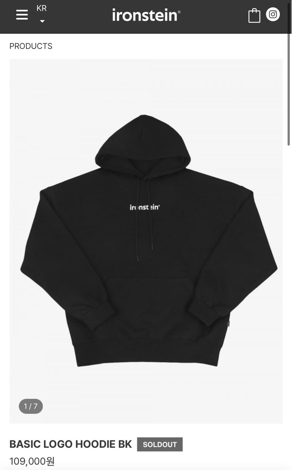 아이언슈타인의 후드티 L 새상품입니다. 시착 조차 하지 않았습니다. 현재 품절 상태이며 김종국님 제품으로 유명합니다