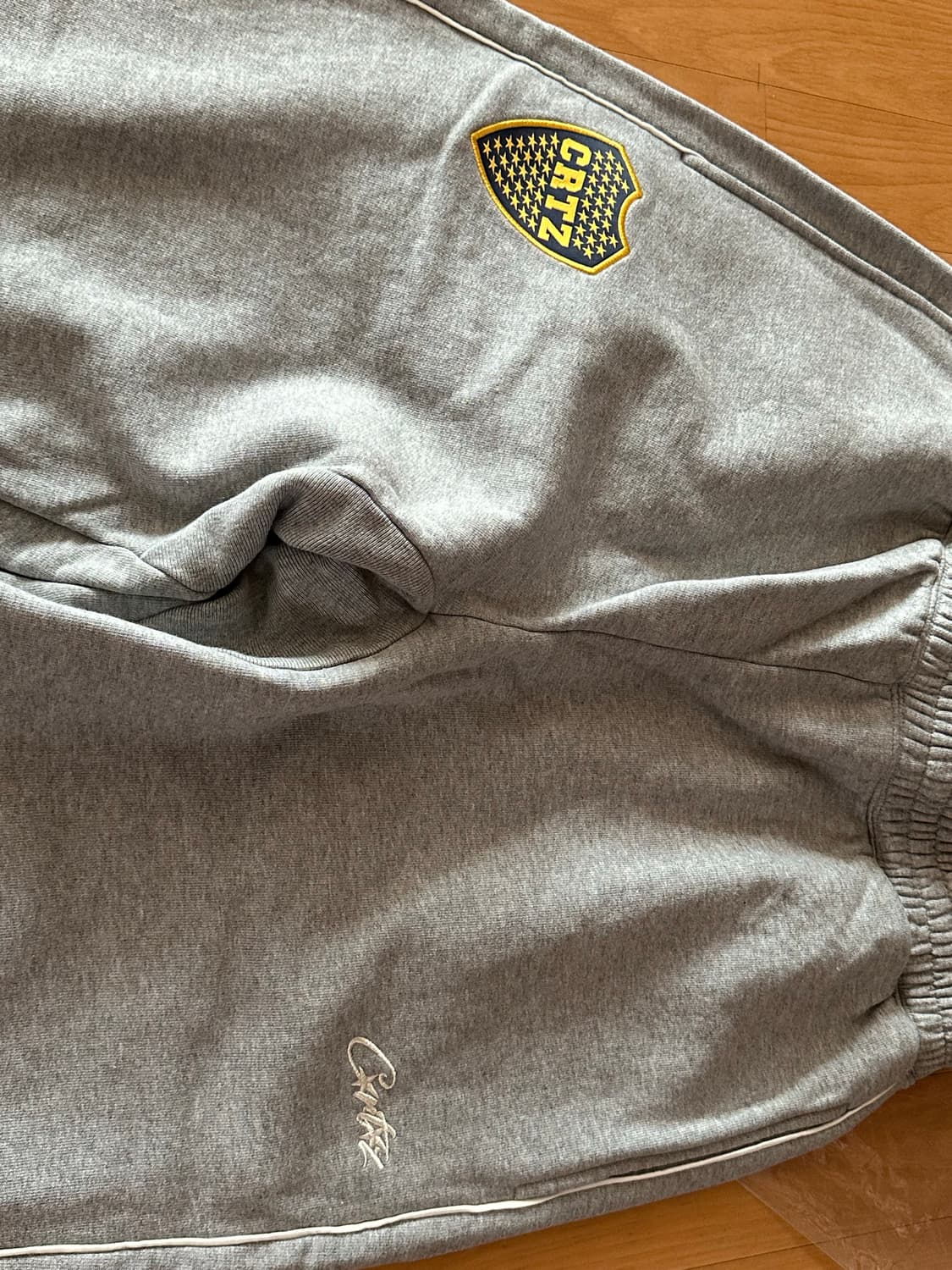 Corteiz boca fleece openhem sweatpant Heather grey M size 새상품 디테일: CRTZ Boca logo자수와 corteiz 자수, 다리 양쪽 white line, back pocket