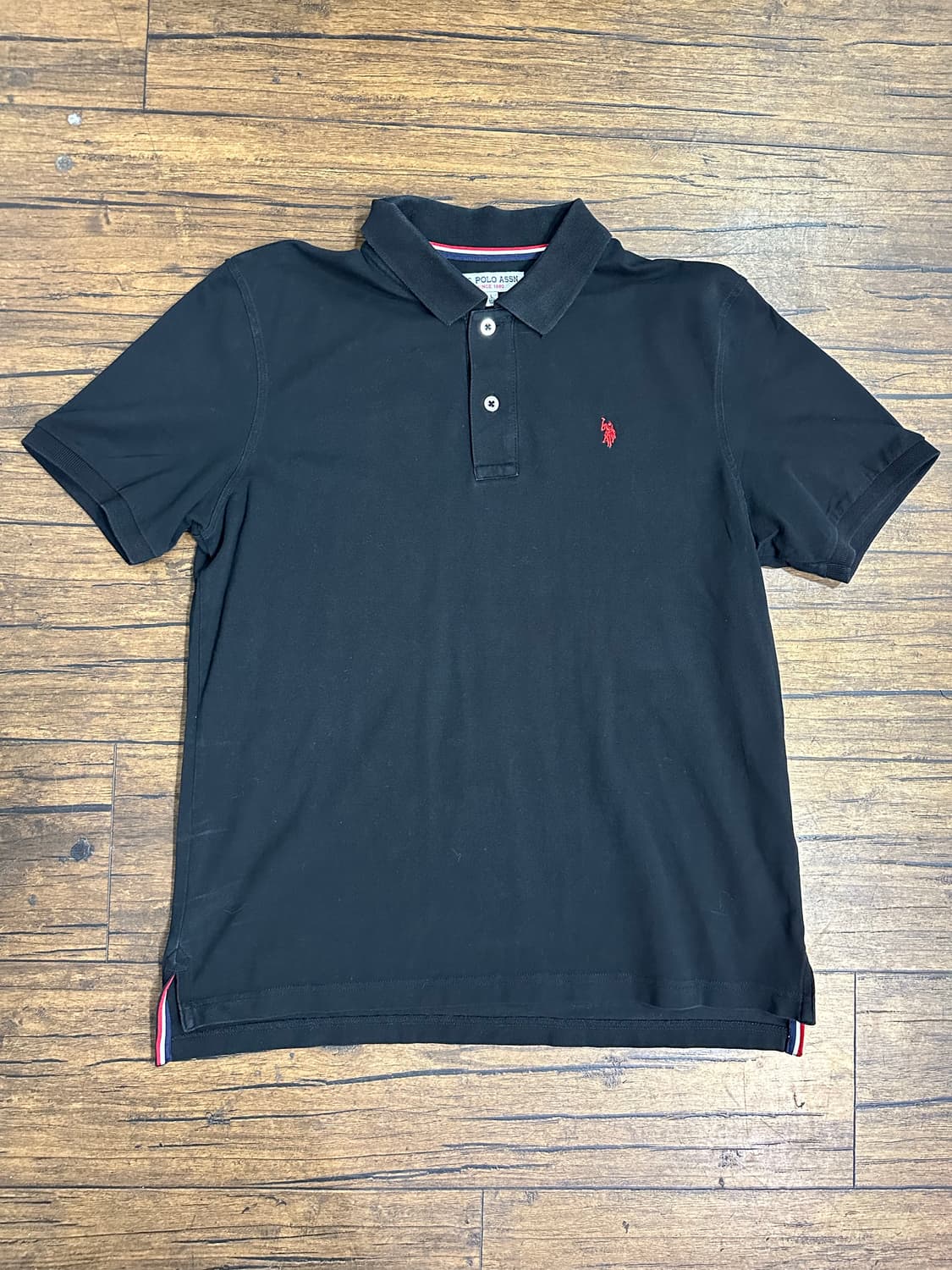 U.S. POLO ASSN. 블랙 카라티입니다 사이즈는 100이고, 면 95% 폴리에스터 5% 재질입니다 - 흡습성이 좋고 땀을 빠르게 건조시켜 쾌적함을 유지시켜 줍니다 - 부드러운 터치감으로 편안하게 착용 가능합니다 빈티지하게 색빠짐 약생활감 멋스럽네요~ 어깨단면 44cm 가슴단면 52cm 총길이 68cm