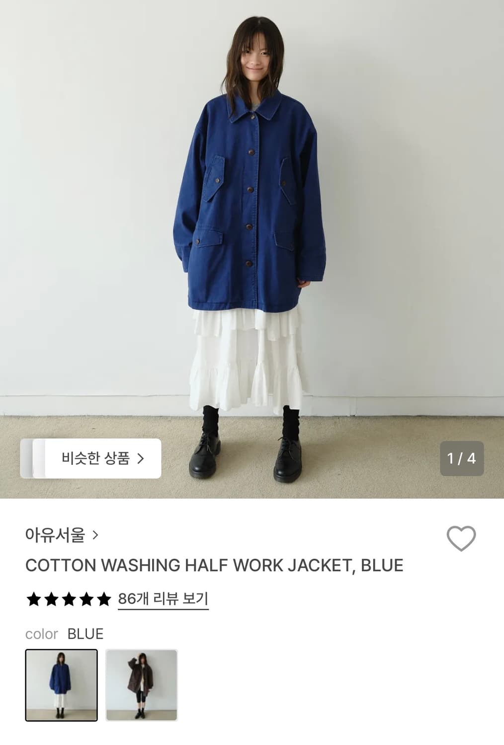 아유서울 코튼워싱 하프 워크 자켓 블류