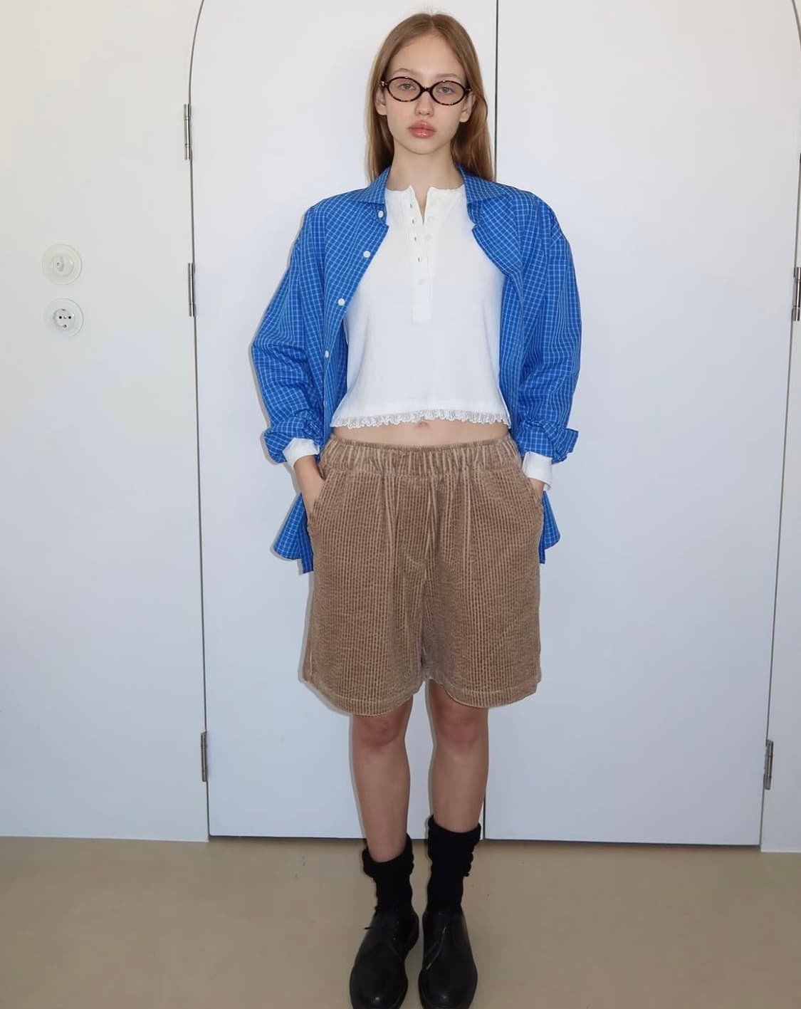 CHECK SHIRRING SHIRT, BLUE 원가 98000원