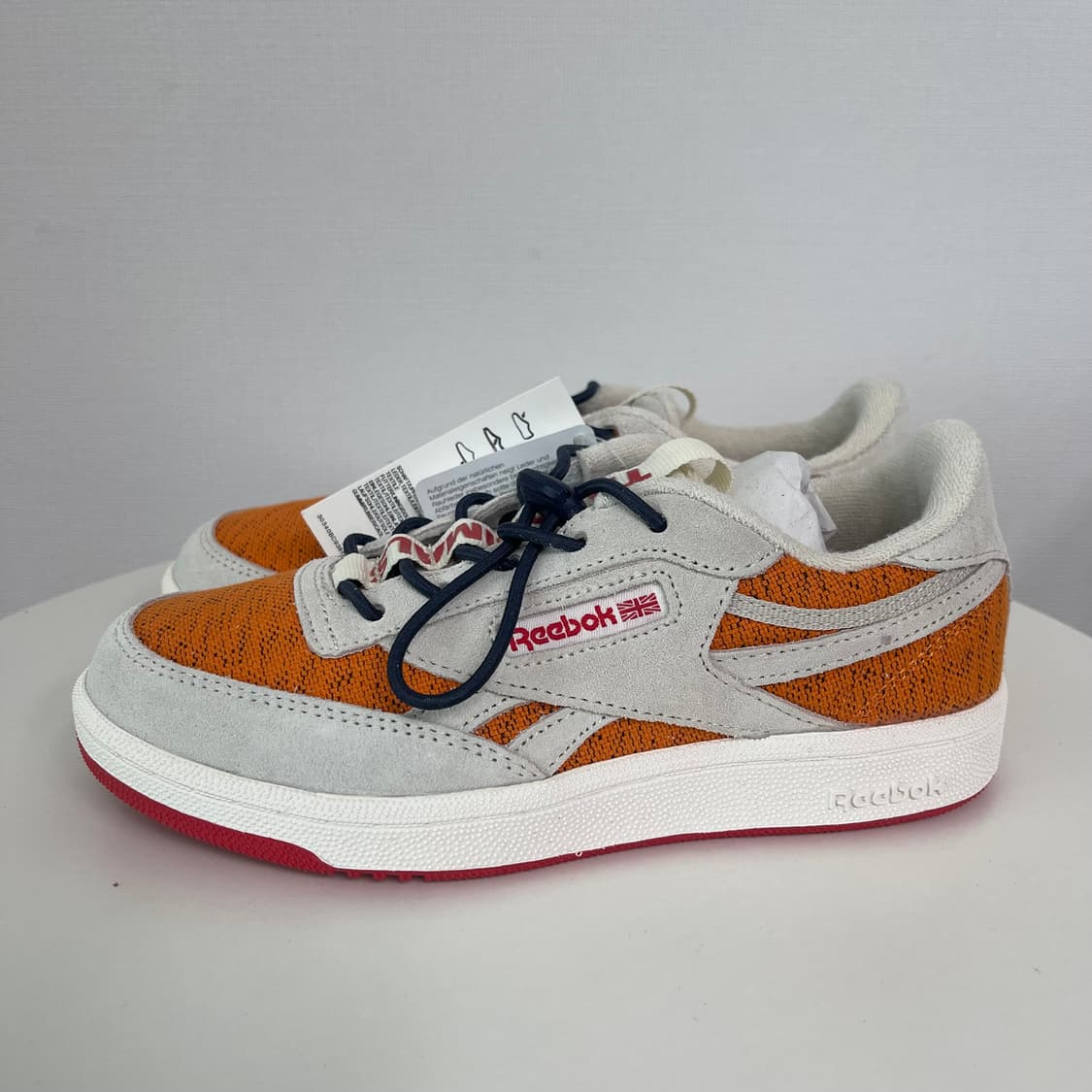 리복 타오 스니커즈 US 2.5 (215) 새제품 사이즈 US 2.5 215mm 제품 입니다 리복 공홈에서 구매했던 제품입니다 박스 그대로 있고 색감 좋게 잘나온 제품 입니다 The Animals Observatory x Reebok Club C Revenge J 'White Bright Orange' . .