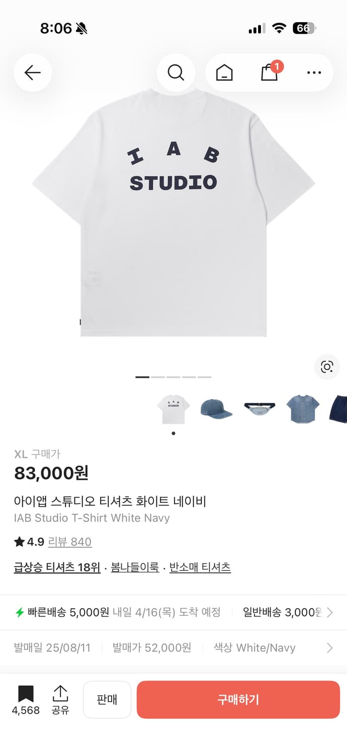 IAB Studio T-Shirt White Navy 새상품 발매일: 25/08/11 사이즈:XL 문의없으시면 안전결제 해주시면됩니다. 궁금하신부분은 연락주세요.