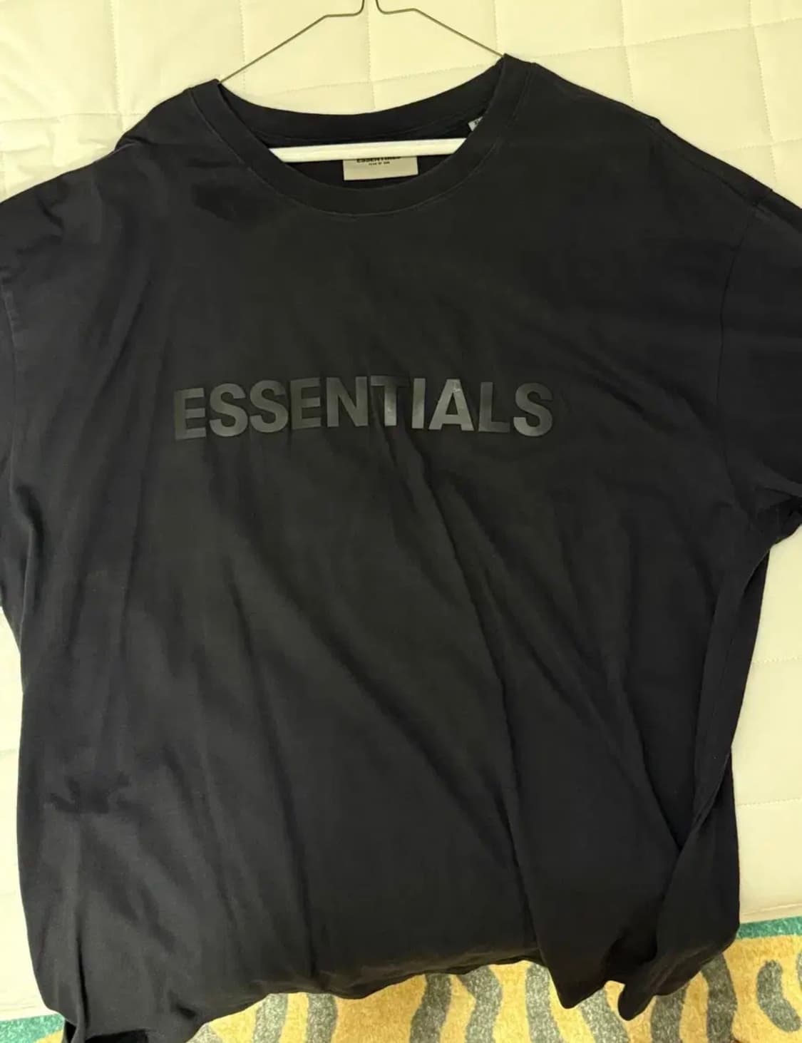 피어오브갓 에센셜 반팔 티셔츠입니다. 무난한 디 자인이라 어느 옷에나 잘 어울립니다. 옷 상태는 양호하고 이쁩니다. 오버하게 나와서 110정도 입으시는 분들 추천해드립니다! 가단 62 기장 75 문의 없으시면 바로 안 전결제해주시면 됩니다! 반품 X 찔러보기 사절