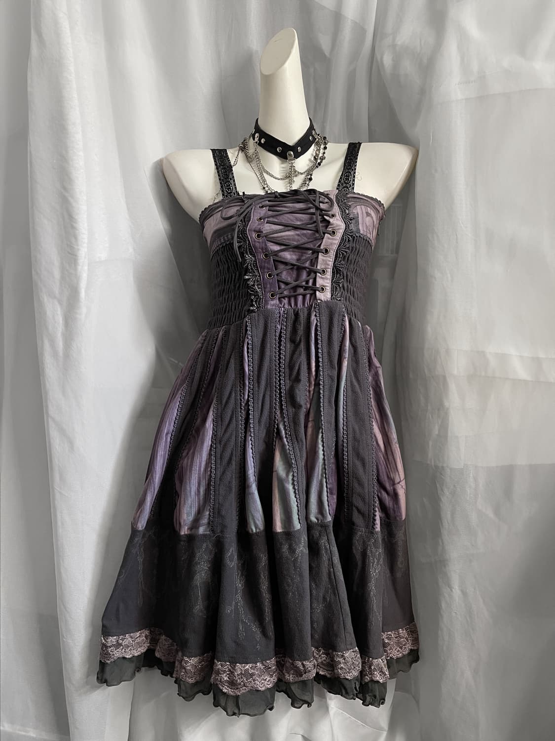 도톰한 가을 원단 느낌 스커트, 원피스로 2-way 활용 가능 고딕한 문양 프린팅, 채도 낮은 색감 Size (cm) 가슴 단면 32~48 총장 73 퍼플그레이 색상 안쪽 블랙 레이스탑 어깨끈 코디용(원하시면 함께 보내드려요!)