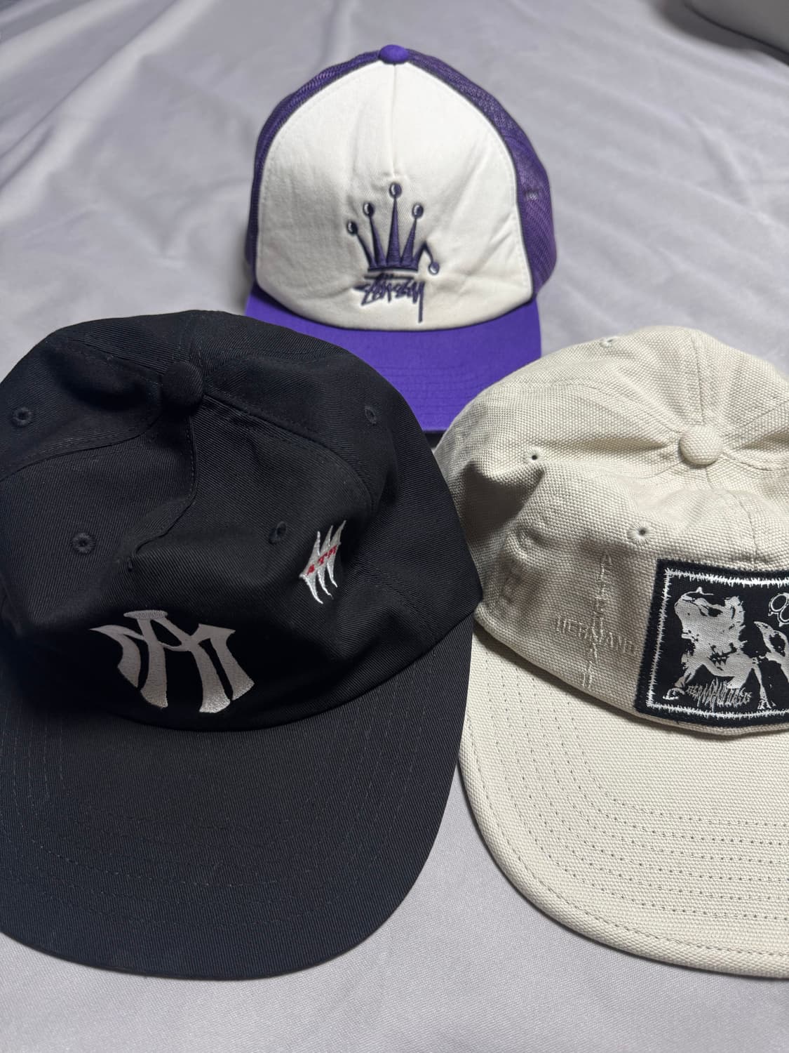 1. 애프터매스 블랙 - 사용감 사진 참고 / ₩29,000 2. 애프터매스 탄 - 하자오염X / ₩29,000 3. 스투시 크라운 트러커 - 약간의 사용감 존재 / ₩50,000 원하시는 제품 문의해주시면 결제창 만들어드리며 일괄구매시 약간의 네고 가능합니다!