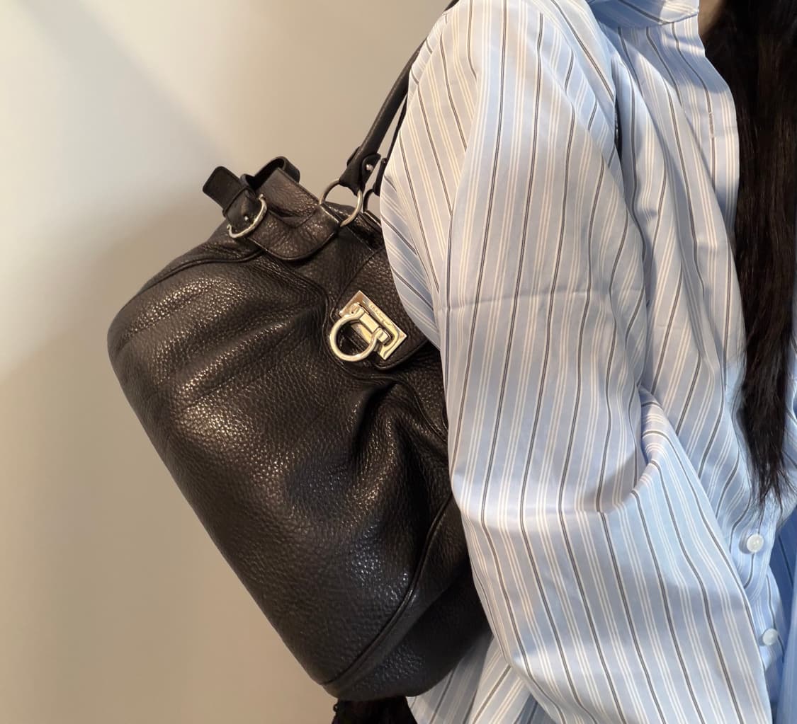 정품 페라가모 사피아노 블랙 간치니 탑 핸들백 차정원백 토트백 핸드백