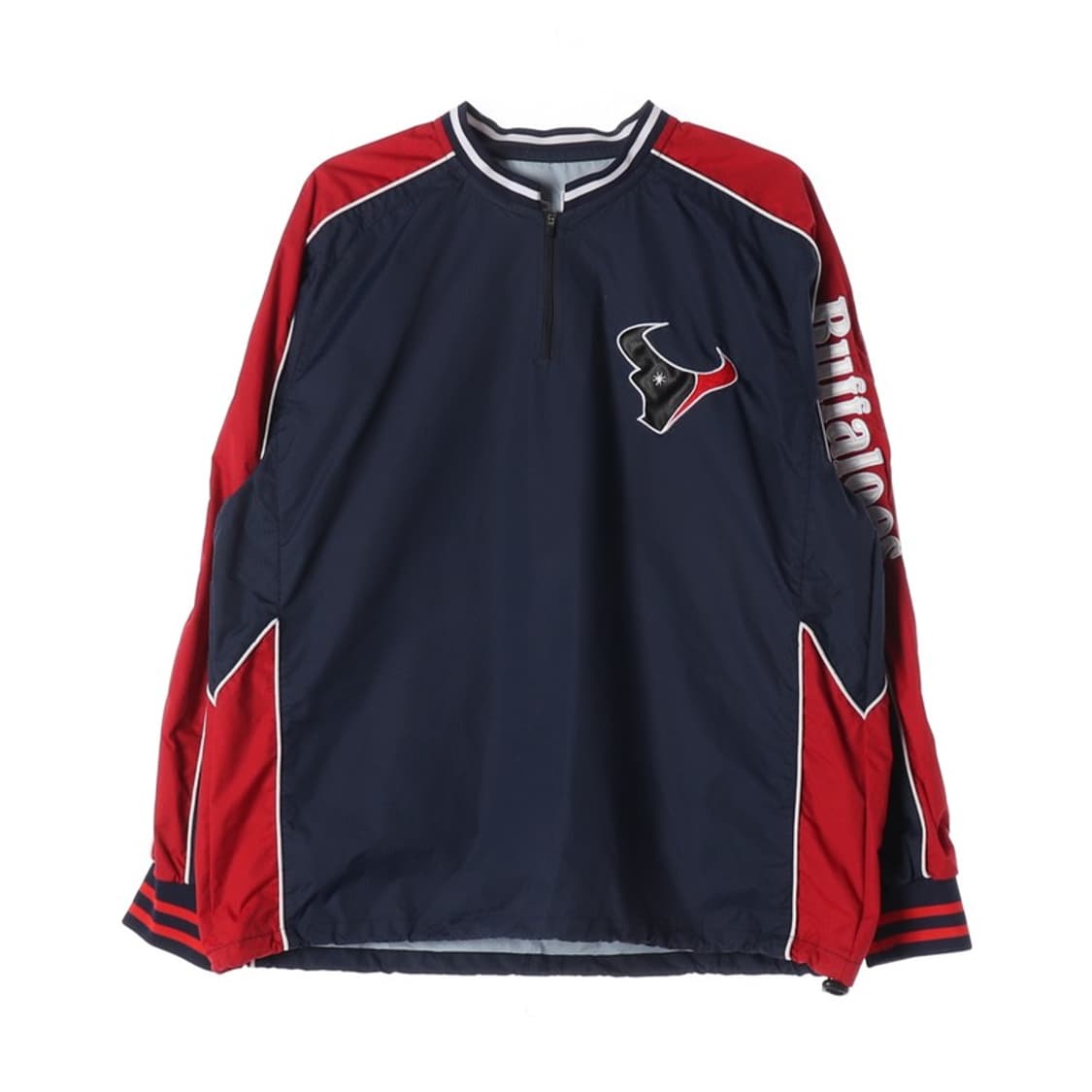 스포티한 매력이 가득한 오릭스 버팔로스(Orix Buffaloes) 팀 웜업 풀오버 자켓입니다. 네이비 바디에 레드와 화이트 라인 배색이 강렬한 포인트를 주며, 뒷면의 버팔로스 레터링과 11번 넘버링이 아메리칸 스포츠 캐주얼 무드를 극대화합니다. 가볍고 바스락거리는 소재로 활동성이 뛰어나며, 스트릿한 룩에 믹스매치 포인트로 활용하기 좋은 유니크한 아이템입니다. #오릭스버팔로스 #웜업자켓 #풀오버바람막이 성별 남 ➡️치수 어깨 : 47.6 가슴 : 62.5 소매 : 64.6 총장 : 69.9 ➡️상태: 사진참고 세탁 및 스팀살균소독 완료! ➡️ 본 상품은 중고, 빈티지 의류로 약간의 헤짐이나 얼룩등이 있을수도 있습니다. 교환,환불은 불가하니 신중한 구매결정 부탁드리겠습니다. ➡️ 촬영중 조명사용으로 인해 약간의 색상 차이가 있을수도 있습니다. ➡️ 무리한 가격 흥정이나 교신은 양해 부탁 드립니다.
