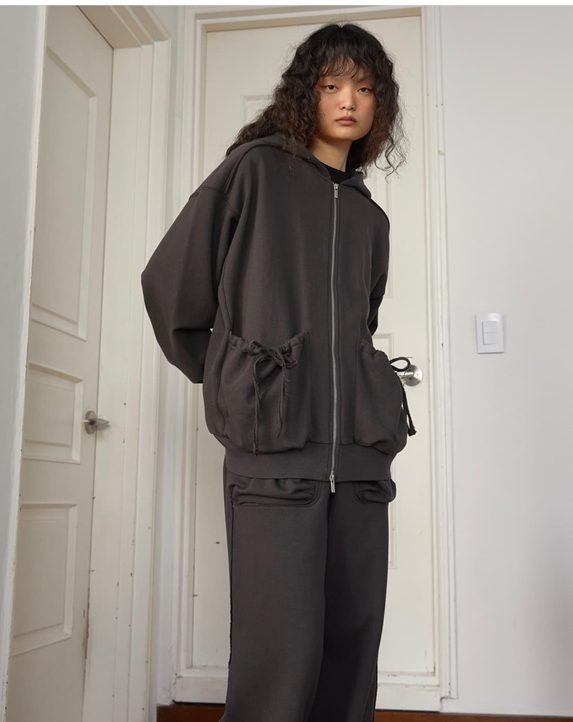 • 마뗑킴 볼륨 포켓 후디 집업 차콜