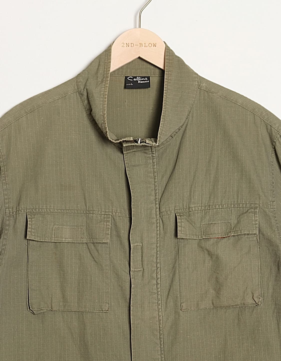 콜린스 옴므 립스탑 밀리터리 셔츠 입니다. 사이즈 : 실측 맨즈 M 추천드립니다. 소재 : 면 100% 컨디션 : 약간의 사용감외 데미지 오염없는 컨디션입니다. 어깨 : 49cm 가슴 : 55cm 소매 : 25cm 소매+어깨 : cm 총기장 : 68cm