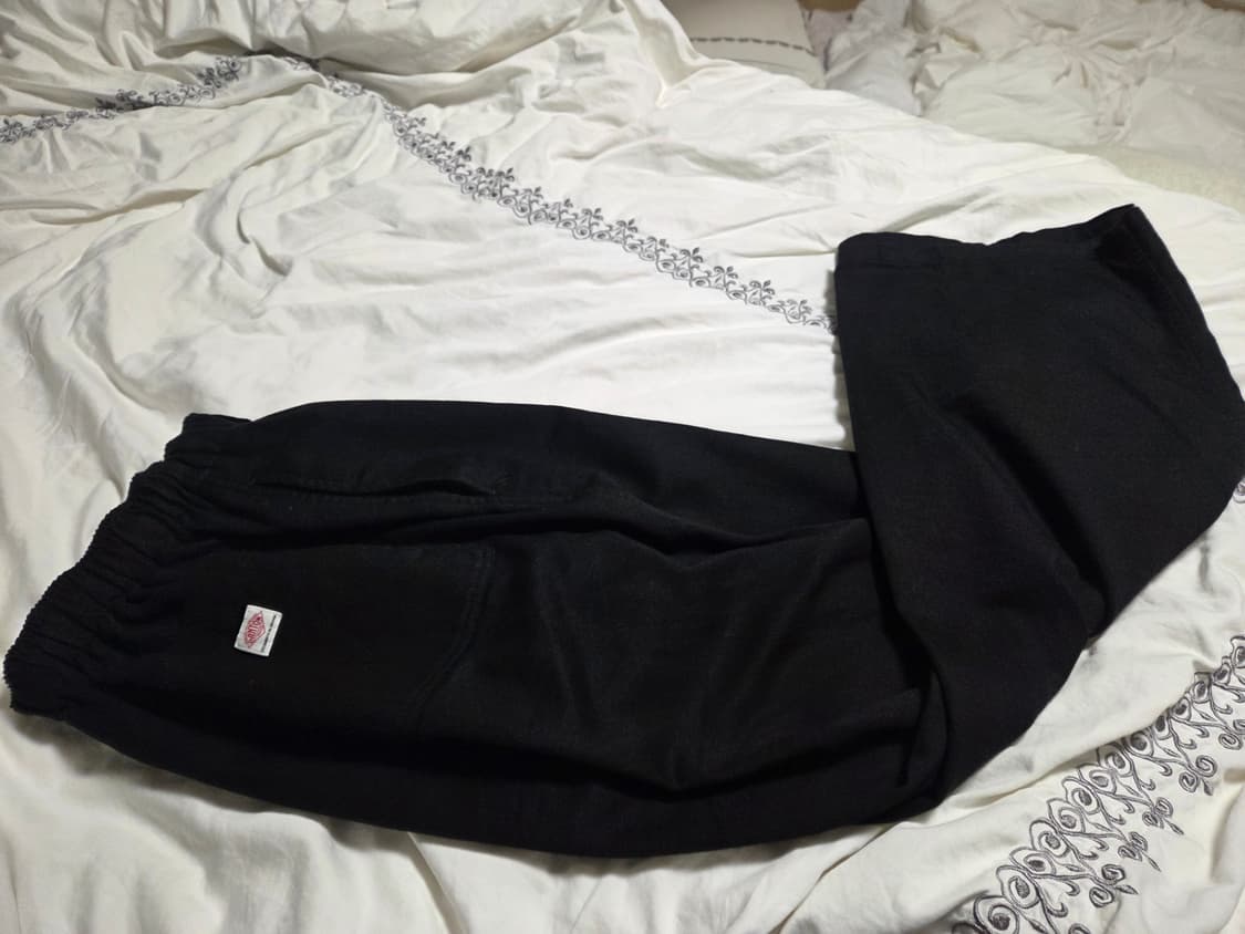 단톤 검정색 세미오버 면바지 판매합니다. 사이즈는 34에서 36까지 적당할 것 같아요. 허리 밴딩이라 착용감도 편하고 지퍼도 있어 입기 좋습니다. 비이커 매장서 구매했고 비슷한 옷이 너무 많아 판매합니다