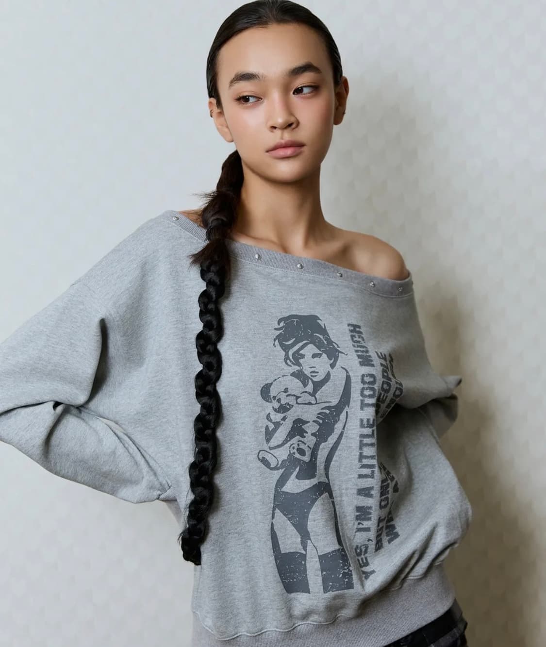 일리고 원숄더 스터드 보트넥 맨투맨 멜란지