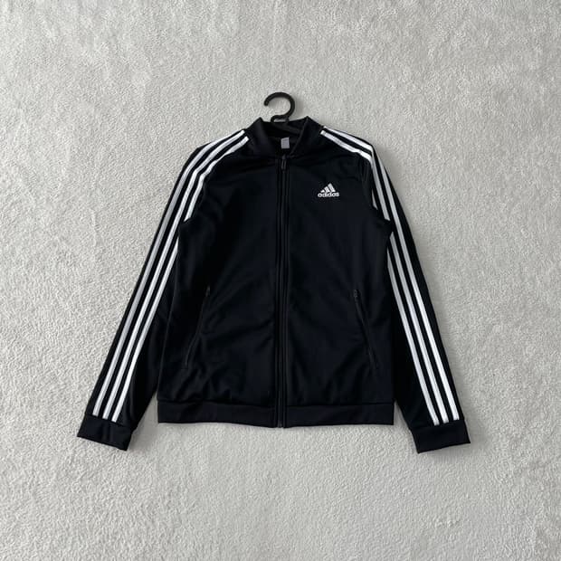아디다스 트랙 져지 쟈켓입니다. 사이즈 : 표기는 우먼M, 슬림한 타입으로 44 추천드립니다. 소재 : 폴리에스터 100% 컨디션 : 우수한 컨디션입니다. 어깨 : 36cm 가슴 : 42cm 소매 : 58cm 소매+어깨 : 68cm 총기장 : 57cm