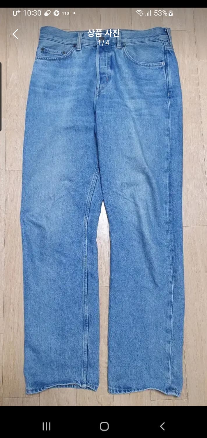 cos 레귤러핏 연청진 허리 31인치 실제 제품 사이즈 42.5(85) 총장 107 바지 밑단 20.5 얼추 맞는 사이즈 입니다. 마찬가지로ㅠ장농에 있다가 입어보니 허리가 낑겨서 판매합니다. 허리만 맞았다면 팔지 않았을 옷입니다. 요새는 잘 안나오는 레귤러 미드라이드 스트레이트 데님입니다. 같은 제품의 다른 색상도 있으니 확인 바랍니다. 두개 이상 구매시 배송료는 무료입니다.
