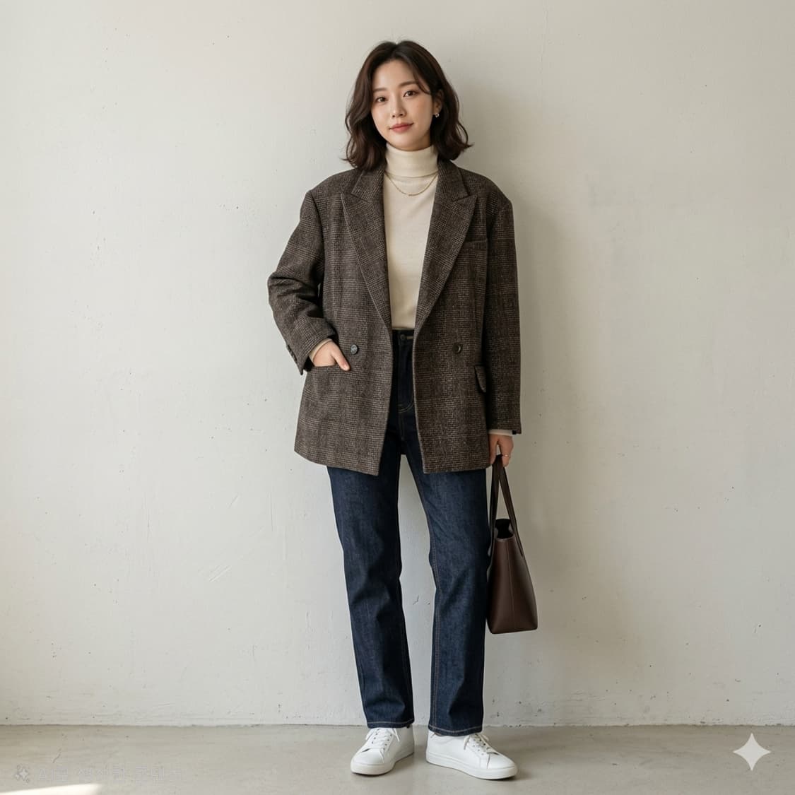 ✔️ 시스템(SYSTEM)의 더블 브리스트 자켓입니다. ✔️ 이탈리아산 고급 혼방 소재를 사용하여 조직감이 고급스럽고 탄탄합니다. ✔️ 브라운과 네이비, 화이트가 섞인 감각적인 체크 패턴으로 클래식하면서도 세련된 무드를 줍니다. ✔️ 전면 더블 버튼 디자인과 피크드 라펠 디테일이 포인트입니다. ✔️ 적당한 두께감으로 간절기에 데일리 아우터나 오피스룩으로 활용하기 좋습니다. ※ AI 모델 착용 참고 이미지입니다. ※ 다음 장부터 실제 판매 상품 실사진입니다. 📏 사이즈 및 실측 ▪️표기 사이즈: 82-94-160 ▪️추천 사이즈: 여성 55~77 (체형에 따라 루즈핏~세미 오버핏) ▪️핏감: 루즈핏 / 드롭 숄더의 자연스러운 오버 실루엣 - 총장: 약 72cm - 어깨단면: 약 52cm - 가슴단면: 약 61cm - 소매길이: 약 54cm ※ 실측은 평면 기준이며 ±1~4cm 오차 있을 수 있습니다. 🛠 상태 정보 ◽️ 전반적으로 양호한 컨디션입니다. ◽️ 이탈리아 수입 원단 특유의 고급스러운 텍스처가 잘 유지되어 있습니다. ◽️ 눈에 띄는 큰 오염, 데미지, 버튼 망실 없습니다. ◽️ 안감 및 주머니 상태 모두 양호합니다. ⚠️ 구매 전 필독 ✔ 중고 의류 특성상 단순 변심 및 사이즈 미스로 인한 환불은 어렵습니다. ✔ 촬영 환경 및 모니터 해상도에 따라 실제 색감과 차이가 있을 수 있습니다. ✔ 미세한 보풀이나 보관 주름이 있을 수 있으니 예민하신 분은 참고 부탁드립니다.