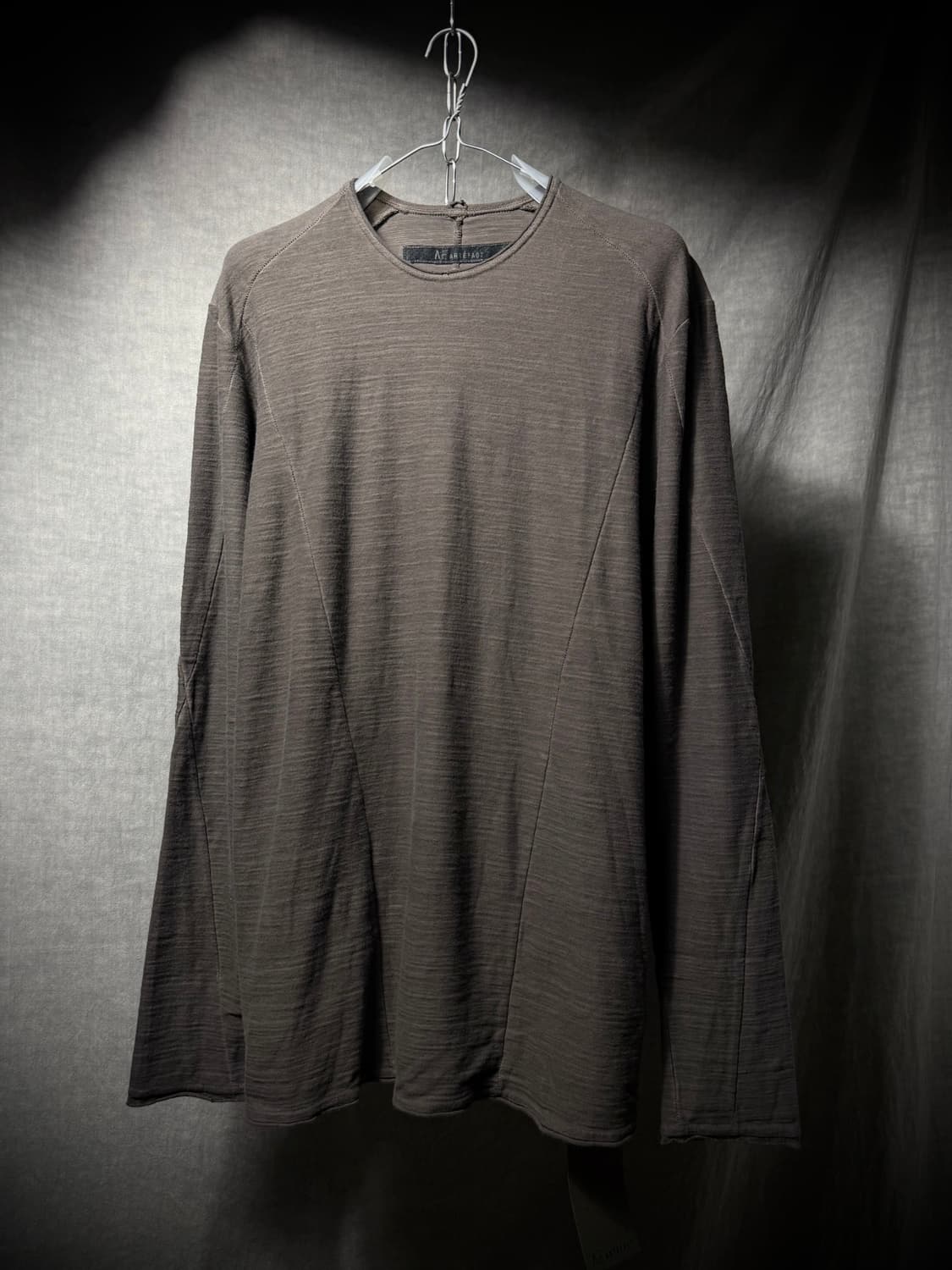A.F Artefact Anatomical Overlock Long Sleeve 구조적인 패턴과 소재의 질감을 활용하여 입체적인 실루엣을 전개하는 일본 레이블입니다 인체공학적 절개 라인을 따라 익스포즈드 오버록 봉제를 적용하여 입체적인 실루엣을 강조했습니다. 원단 특유의 슬러브 질감이 특징이며 네크라인과 소매 끝단은 러프하게 마감되었습니다. Condition: S 4 Size Shoulder: 50/Chest: 55/Sleeve: 72/Length:76(cm) Fabric: Cotton