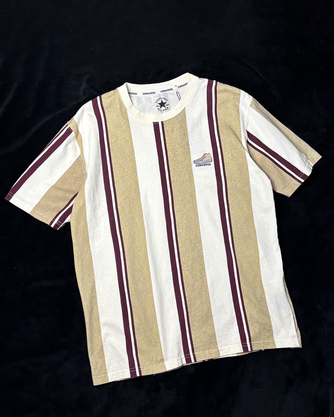 글로벌브랜드 컨버스 재팬 라인의 티셔츠 입니다 - 세로 스프라이프 - 원단 퀄리티 좋음 - 넥부분 시보리 짱짱함 - 왼쪽 가슴에 컨버스 심볼 자수 로고 - 클래식한 아메리칸 캐쥬얼 스타일을 좋아하는 분들에게 강추 합니다 상세 촬영 : 아이폰 15 & 주광색(흰색) 조명 (cm) 총장 68 어깨 48 가슴 52 소매 23