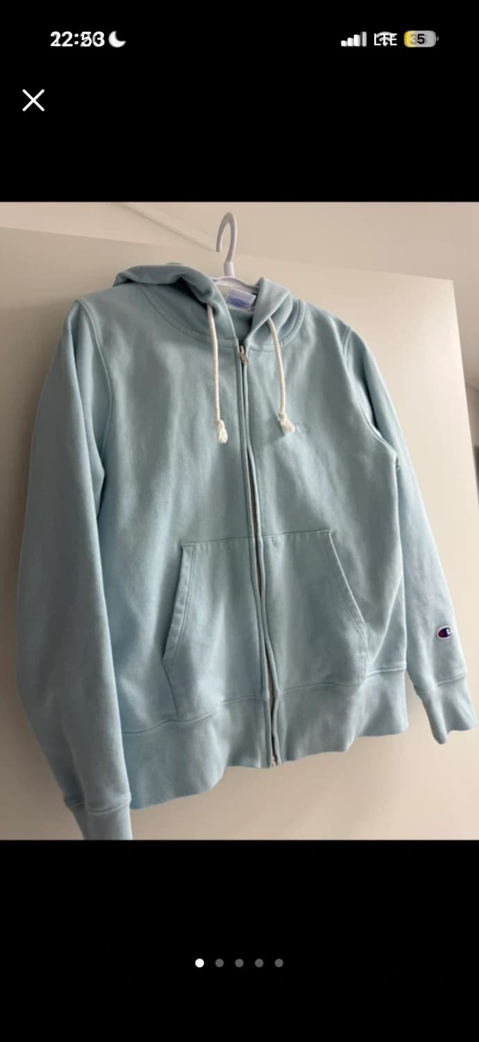 여성 C로고 French Terry 풀집 후드 스웨트셔츠 (LIGHT BLUE) 여성사이즈 입니다. 뒷면에 3번째 사진처럼 밝게 빠진 얼룩 있습니다. 다른 부분 상태는 좋습니다. 상세 사이즈 마지막장에 올려뒀습니다. 완전 시나모롱 색이라 이뻐여 ㅎㅎ 사이즈가 라지이긴하지만 여성용이라 그렇개 크진않아요!