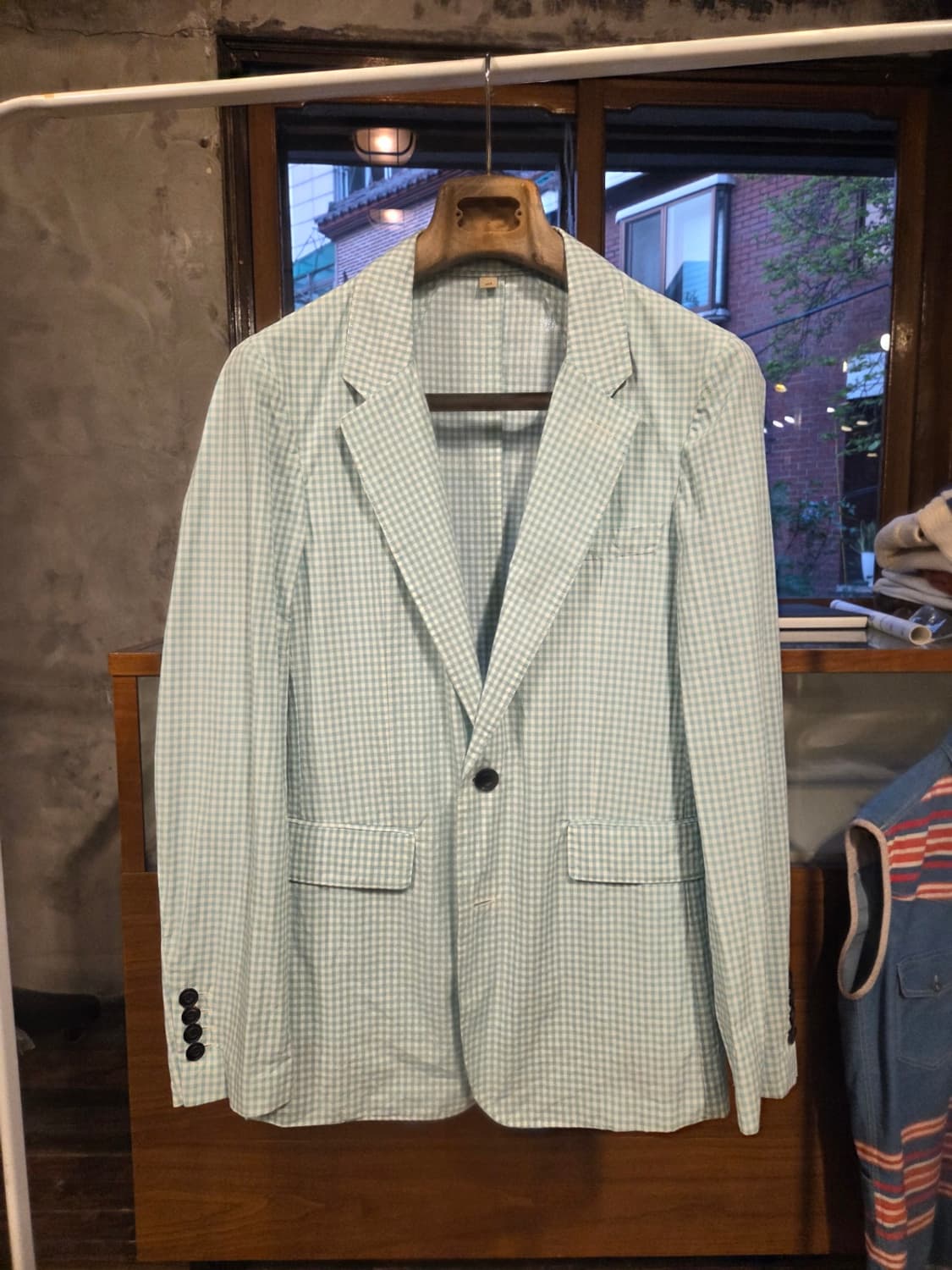 바스락거리는 코튼의 고급감에 웨어러블한 깅엄패턴으로 연출된 버버리의 싱글브레스티드 자켓입니다. 자켓을 구성하는 심지나 패드 등을 제거한 언컨스트럭처로 재단되어 보다 편안한 실루엣이 연출되는 모델로 사이즈 국내 슬림 100 추천합니다. 감사합니다.