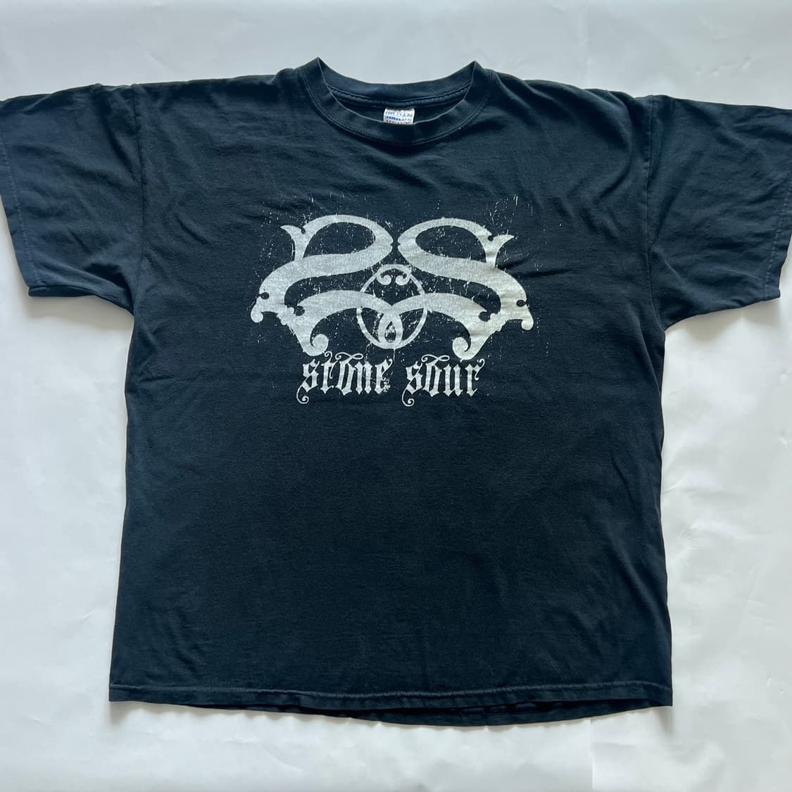 다크하고 거친 분위기죠..👍 표기 사이즈: XL 실측: (총장: 69 / 어깨 : 56 / 가슴: 59 / 소매: 18) 티셔츠가 좋아서 해외 곳곳을 직접 돌며 제 눈에 예쁜 것들로만 골라왔습니다. 저만 보기 아까운 것들을 취향 맞는 분들과 나누려고 하나씩 꺼내놓고 있습니다. 실측 보시고 편하게 가져가세요. 빈티지 특성상 교환/환불은 어렵습니다🙏