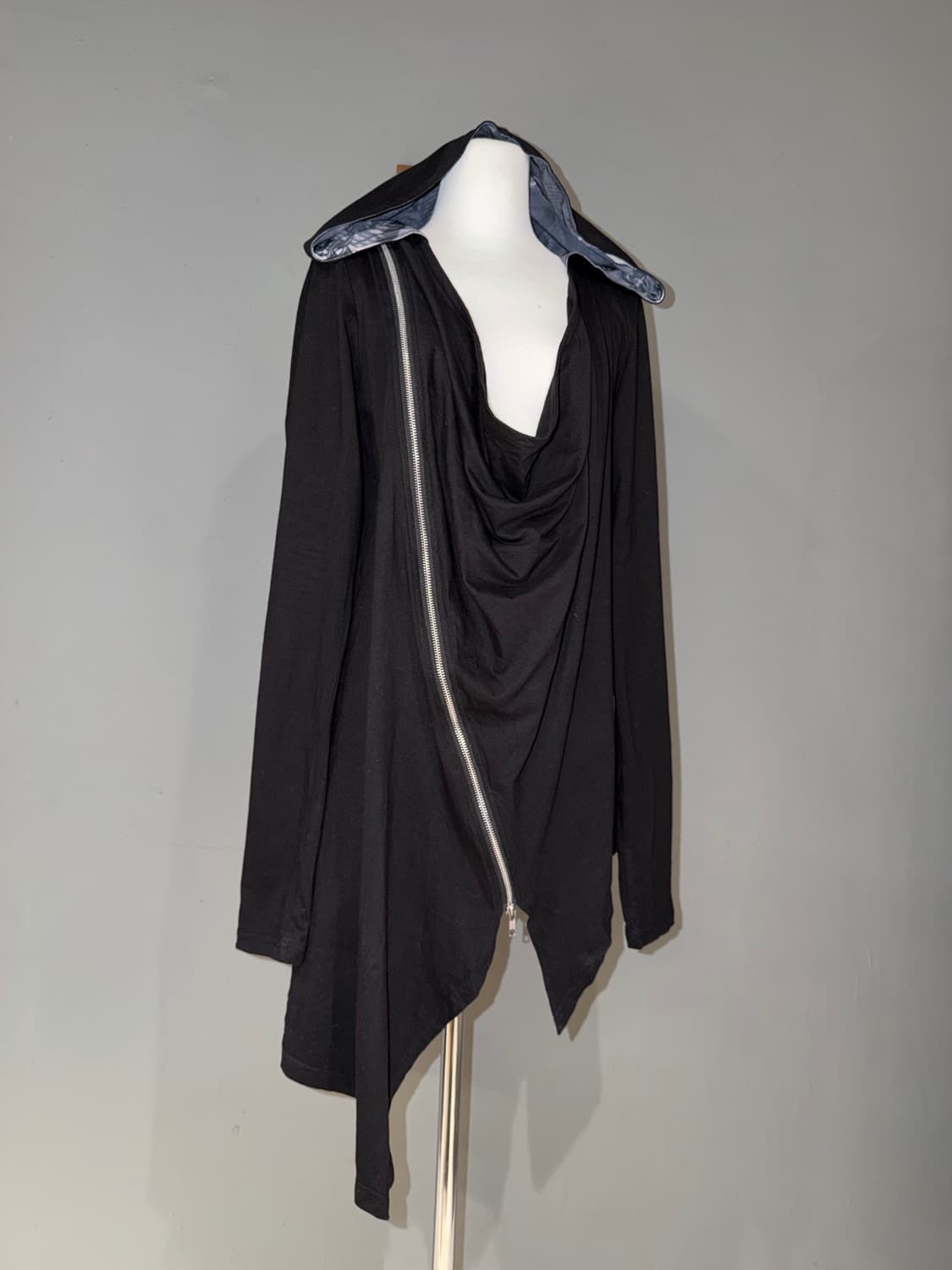 •Archive side zipper drape hood zip-up •size: cm 45 54 66-101 75(어깨 가슴 총장 팔) •price: 105000 -사이드 지퍼라인으로 아카이브한 감성이 짙게 느껴지는••• -드레이프로 떨어지는 라인감과 양쪽 비대칭한 컷팅 디테일로 더욱 매력적인 제품 -투웨이 지퍼로 다양하게 핏감 활용 가능합니다 -팔 아주 길구 후드는 또 아주 큽니다 안나가면 제 품으로 ..