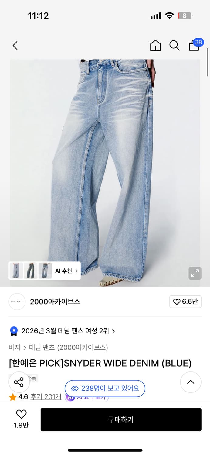 2000아카이브스 와이드 데님팬츠 스톤그레이 02사이즈 판매