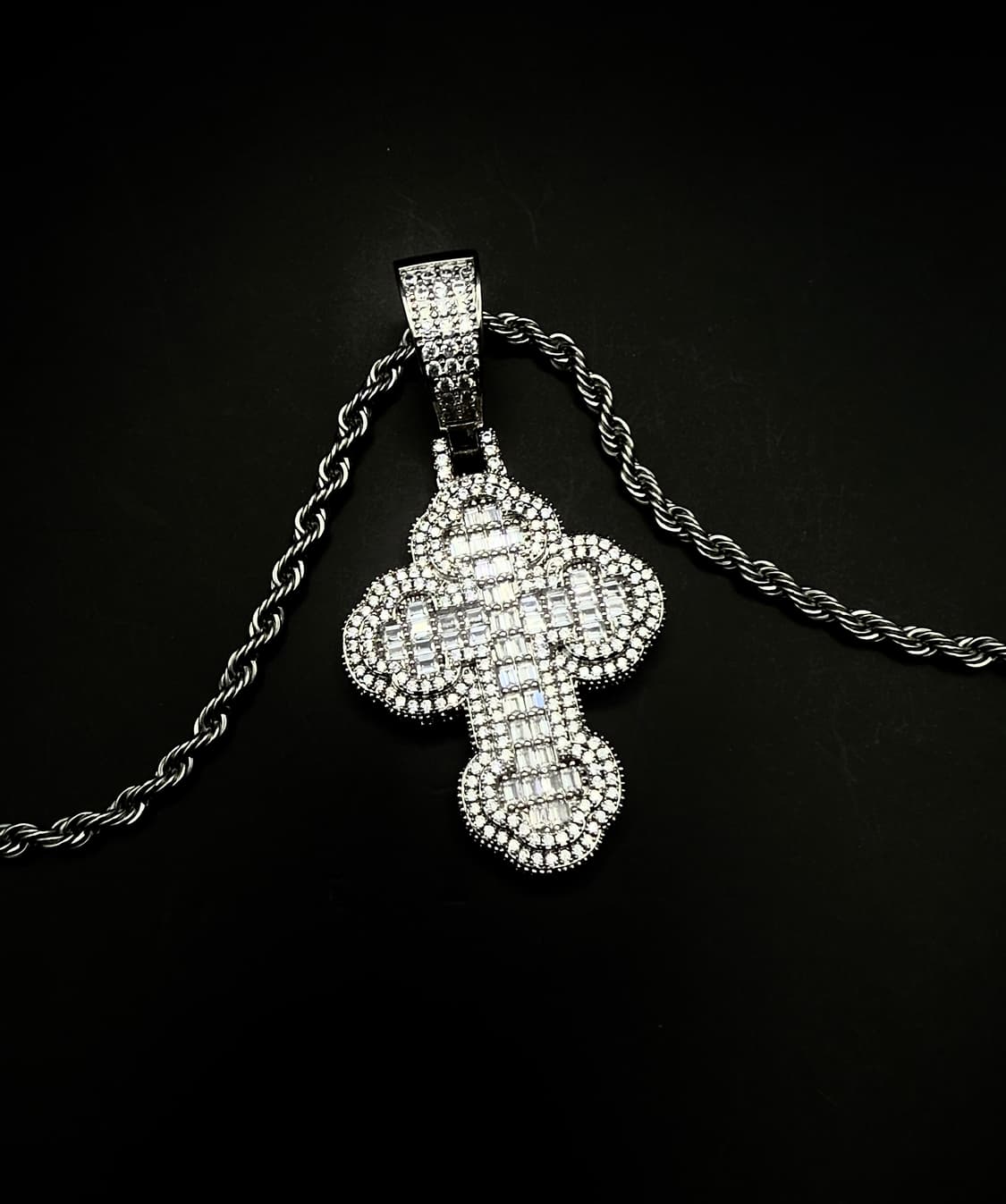 신앙심을 2배로 만들기 예수님은 못에 2번 박혔어. <Product shot> (Fat the cross necklace) 전체길이: 약 60.5cm material: Brass, Cubic, 뻘건 맛