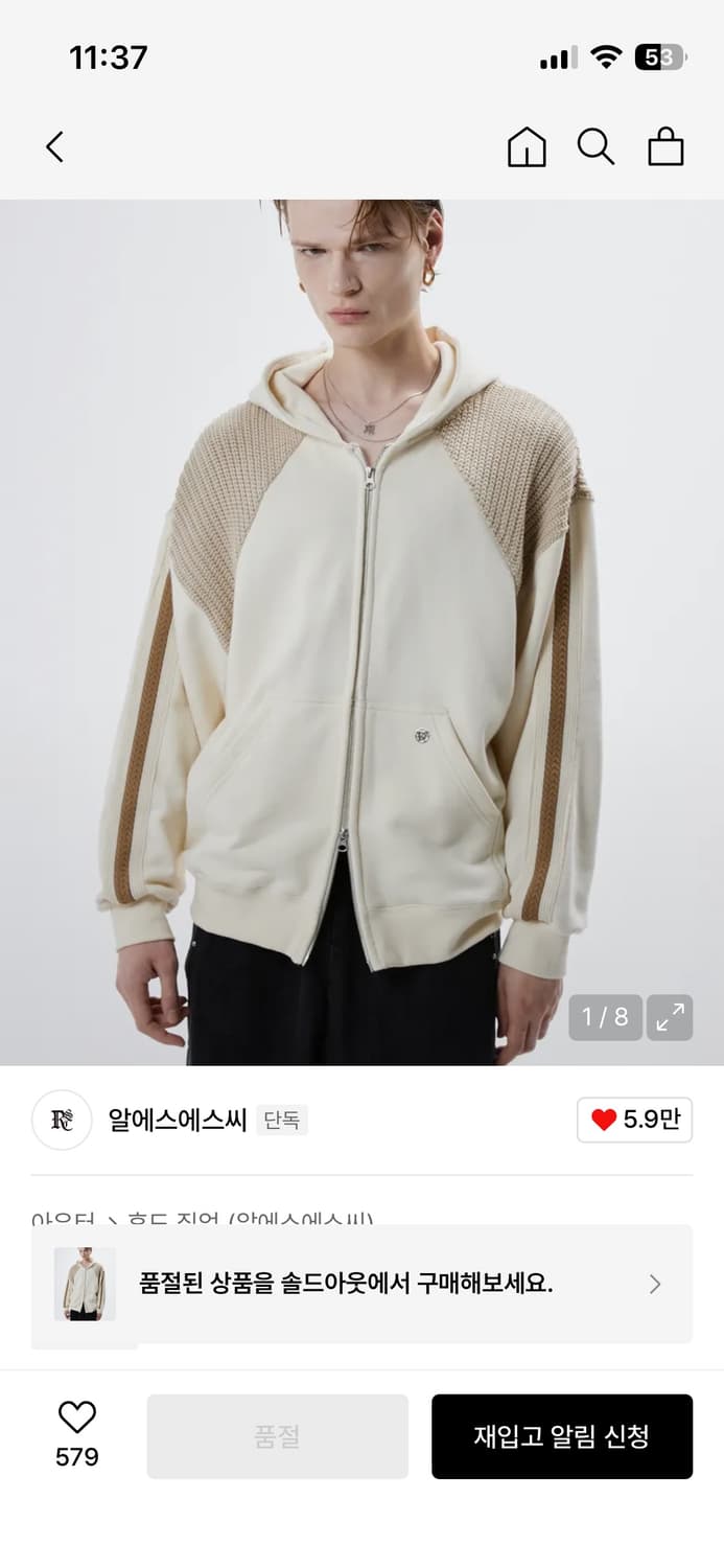 RSSC 후드집업 판매합니다. 6개월 전쯤 구매했고 일주일 전 드라이클리닝 완료했습니다. 전체적으로 상태는 괜찮은 편이지만 구매 시기가 있어 사용감은 느껴질 수 있습니다. 아이보리 컬러 베이스에 어깨 니트 패널 디테일이 들어간 제품이라 흔하지 않고 포인트 주기 좋습니다. 핏도 여유로운 편이라 편하게 입기 좋고, 데님이나 블랙 팬츠에 매치하기 좋습니다. 실사진 확인 부탁드리며, 중고 특성상 교환/환불은 어렵습니다. 편하게 문의 주세요. 해