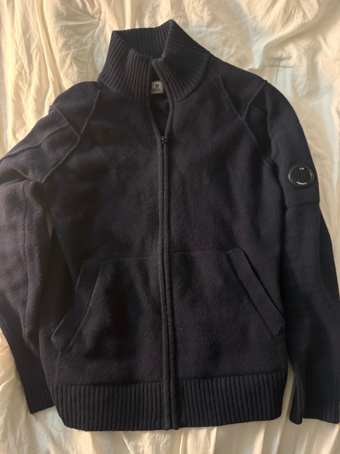 CP컴퍼니 니트 집업 네이비 판매합니다. 사이즈: 48 (실측상 S~M 정도) 색상: 네이비 상태: 전반적으로 사용감 적고 깔끔합니다. 하자 없습니다. CP컴퍼니 특유의 렌즈 디테일 살아있고, 기본템이라 코디 활용도 높습니다. 요즘 날씨에 가볍게 걸치기 좋아요. 해바로 거래 가능하신 분 우선합니다. 직거래 / 택배 모두 가능합니다. 편하게 연락 주세요.