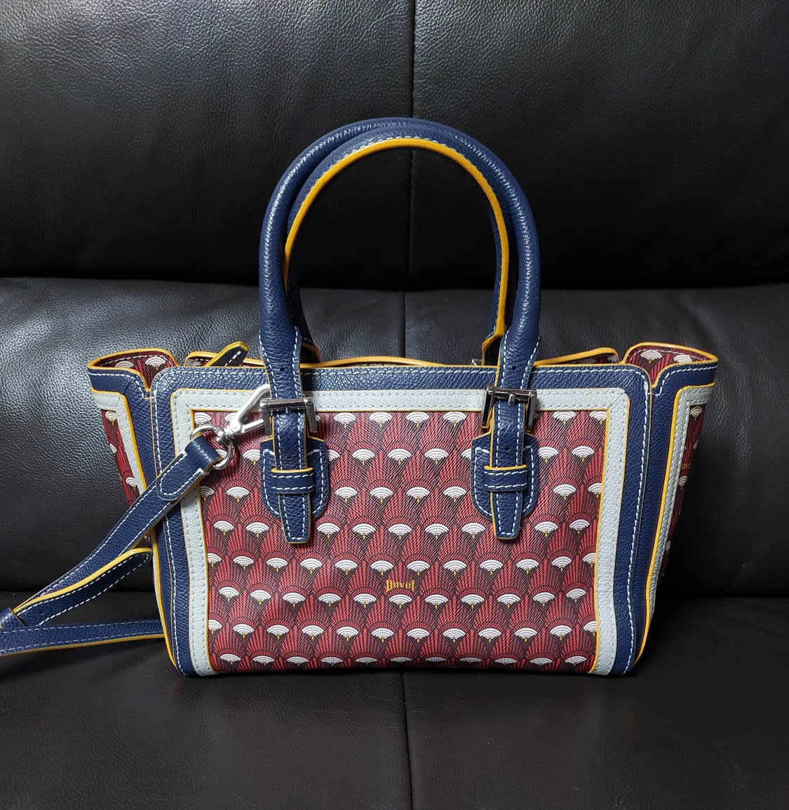듀벳 Duvet 토트백 크로스백 색상: 네이비/레드/옐로우 소재: PVC,가죽 매력적인 패턴과 색감이 돋보이는 Duvet 토트백이에요 네이비, 레드, 옐로우 컬러 조합으로 포인트를 주기 좋아요 내부 수납 공간도 넉넉해서 실용적이랍니다 데일리룩에 세련된 감성을 더하고 싶으신 분들께 추천드려요 제품컨디션 92% 상태좋음 하자없음 가로: 24cm, 세로: 26cm, 폭 9.5cm