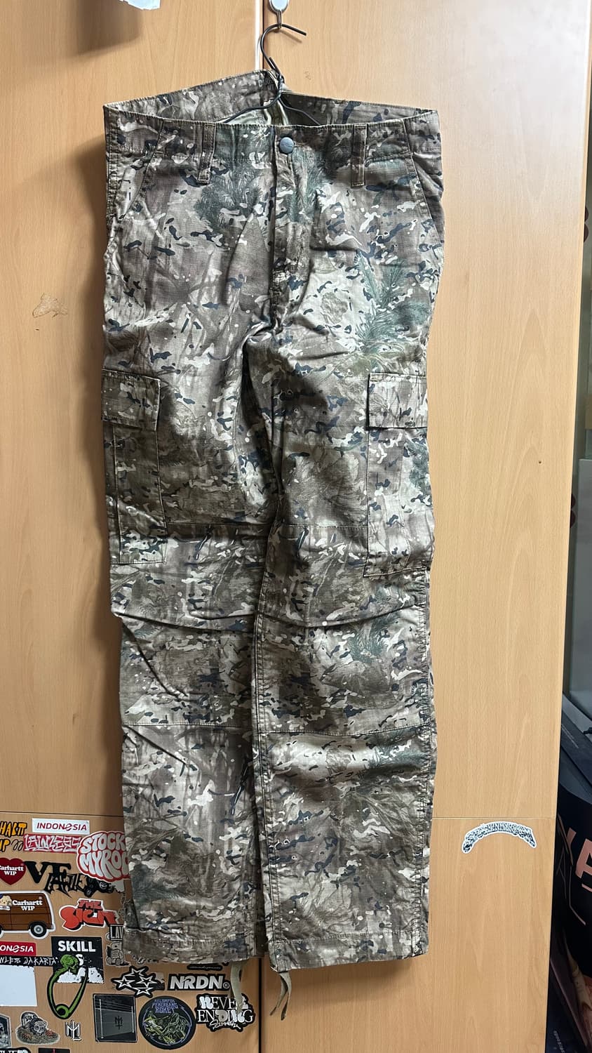 칼하트 패턴 카고 면바지입니다. 카고 바지 특유의 편안함과 수납성을 자랑합니다. 밀리터리 패턴이 돋보이는 제품입니다. 별도 문의 없으시면 바로 안전결제 부탁드려요!